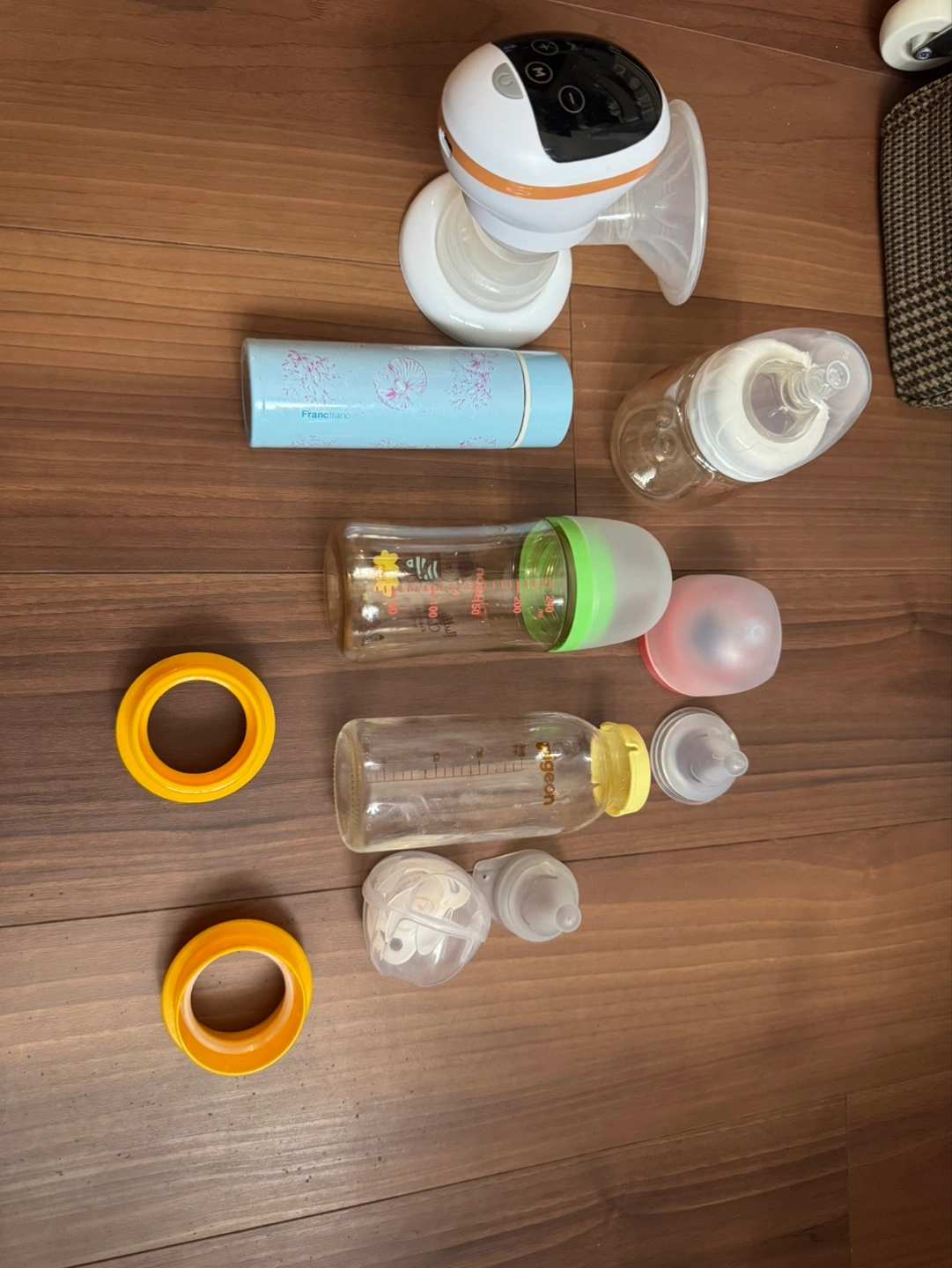 ⚪︎izxi いつくし 電動搾乳機 搾乳機と搾乳機につけれる哺乳瓶のセットです。 ほぼ搾乳をしなかったので、合計10回くらいしか使っていません。 搾乳後は捨ててしまったので、哺乳瓶は未使用です。 ⚪︎ピジョン哺乳瓶 ガラスの200ml 流量大の乳首付き プラスチックの240ml Sサイズ1つ、Mサイズ2つの乳首付き ほほえみ缶用アタッチメント ほぼ母乳だったのと、出品していない哺乳瓶をメインで使っていたので、こちらは用意したもののほぼ出番がありませんでした。 ⚪︎その他 お湯携帯用の小型水筒(フランフラン) ヌックのおしゃぶり おしゃぶりも買ったままほぼ使わなかったため、使用頻度はかなり低いです。 全て、2024年5月に購入しました。 メトロ沿線の駅でしたら、お渡しに伺うことも可能です。