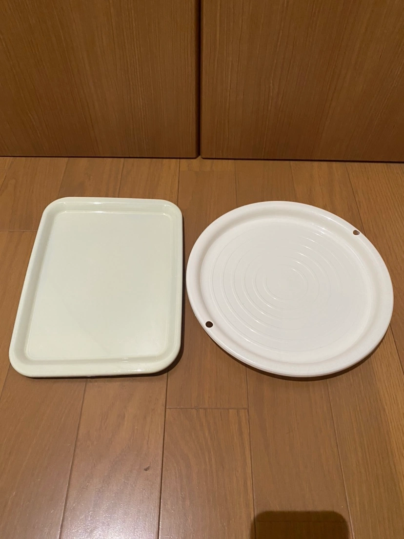 *電子レンジ対応ノンスリップトレー 30cm *レンジトレー 丸型 29cm 角トレーの方は、若干歪みがあります(写真4・5枚目)が、電子レンジで使う時には問題なく使用できていました。 電子レンジを買い替えサイズが合わなくな ったため出品致します。 素人検品ですので見落としがあったり、自宅で保管していたので、神経質な方はご遠慮下さい。 使用感や汚れの捉え方には個人差があります。 中古品ということをご理解いただいた上で、ご購入をお願いいたします。 購入後のクレームやキャンセルはお断りしております。 気になる点がありましたら、お気軽にご質問下さい。 よろしくお願いいたします。 他の場所にも出品していますのでどちらかで売れれば急遽出品を中止させていただくことがありますのでご了承ください。