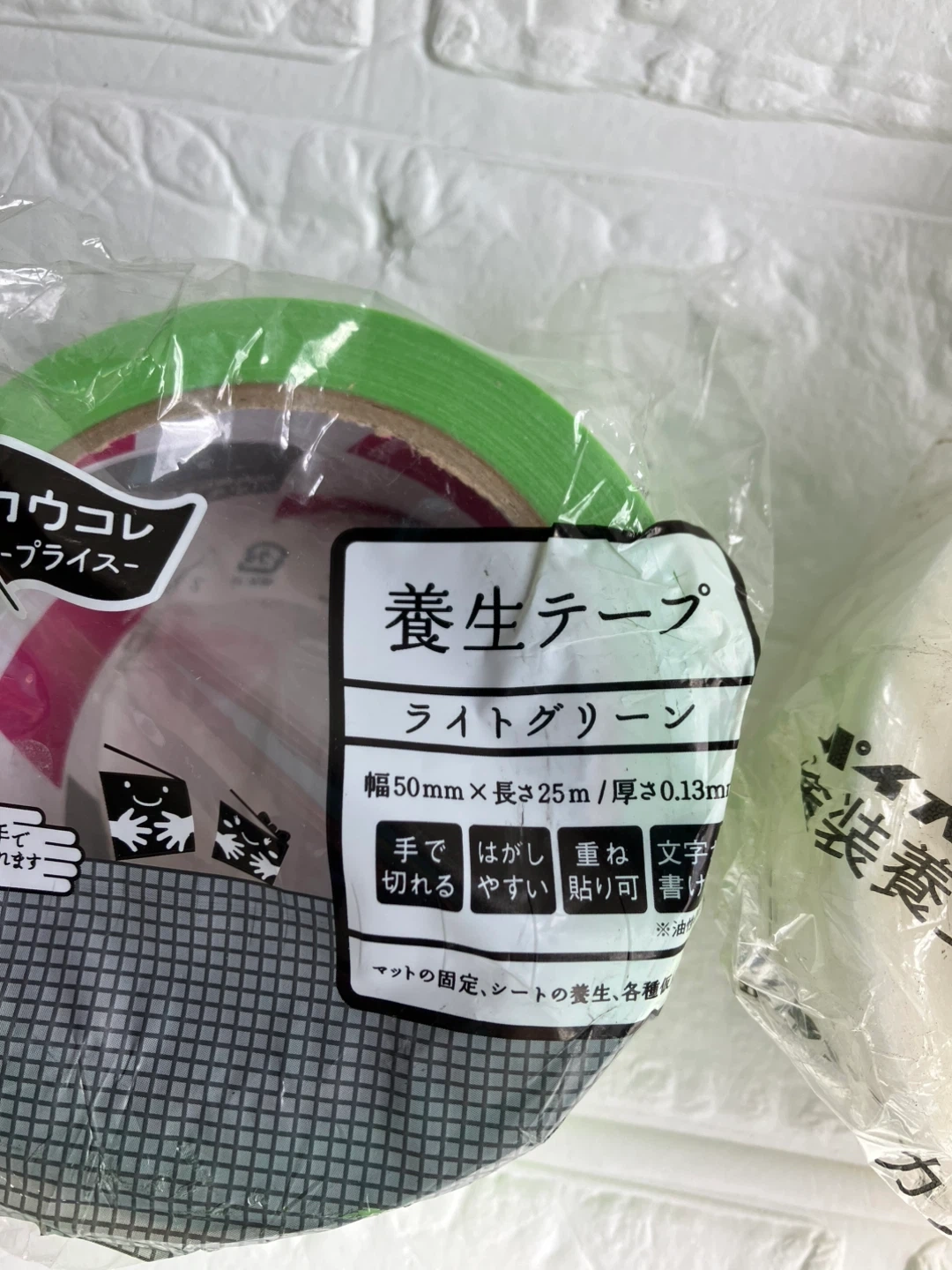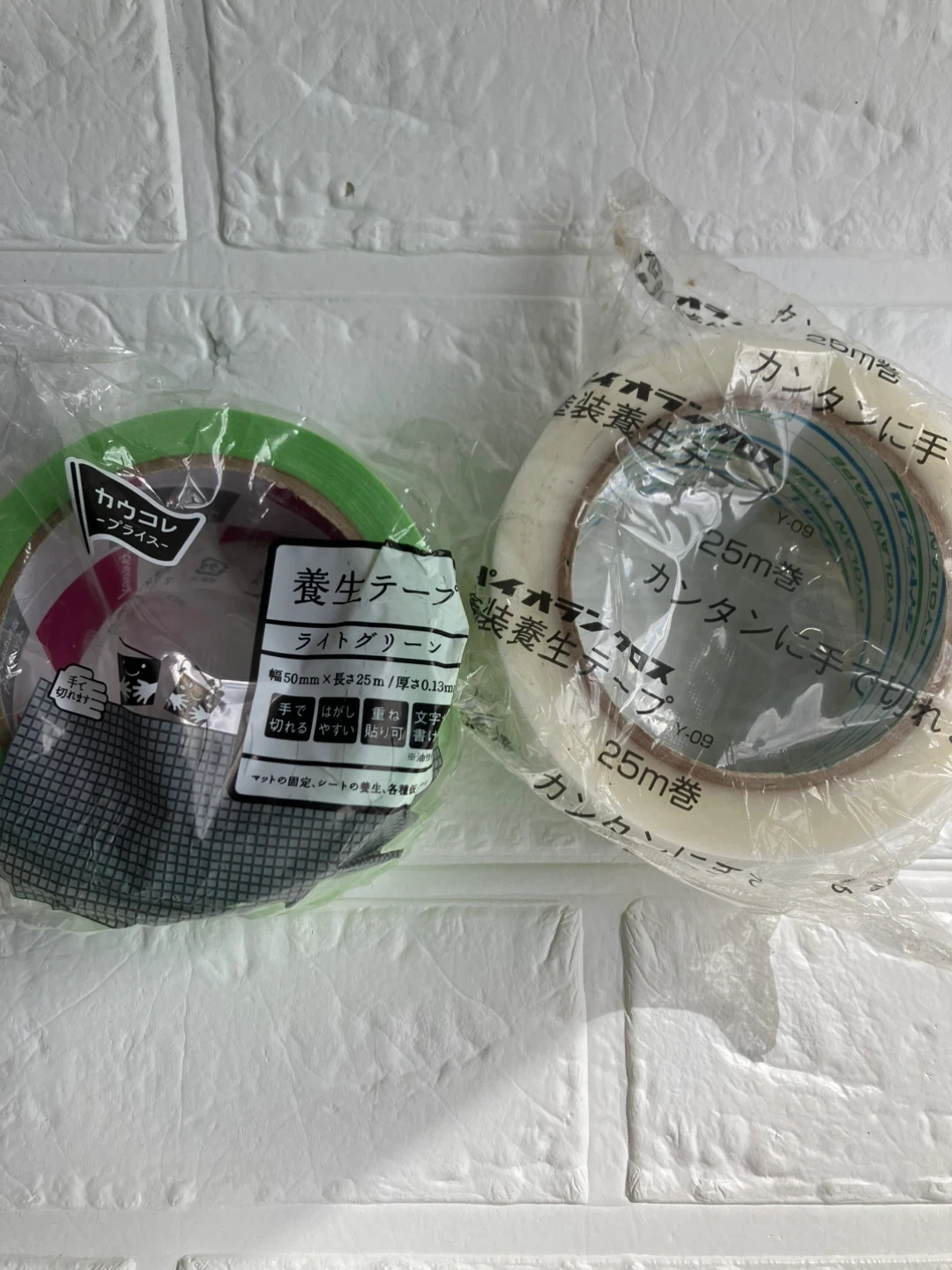 養生テープのセットです ・ライトグリーン: 幅50mm × 長さ25m、厚さ0.13mm ・ホワイト: 25m巻 中古品であることご了承ください