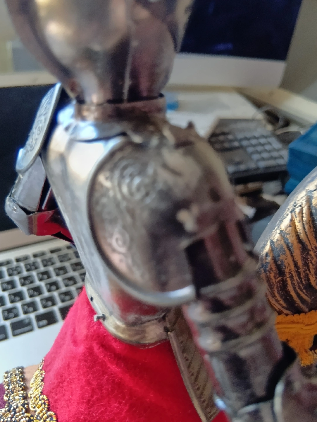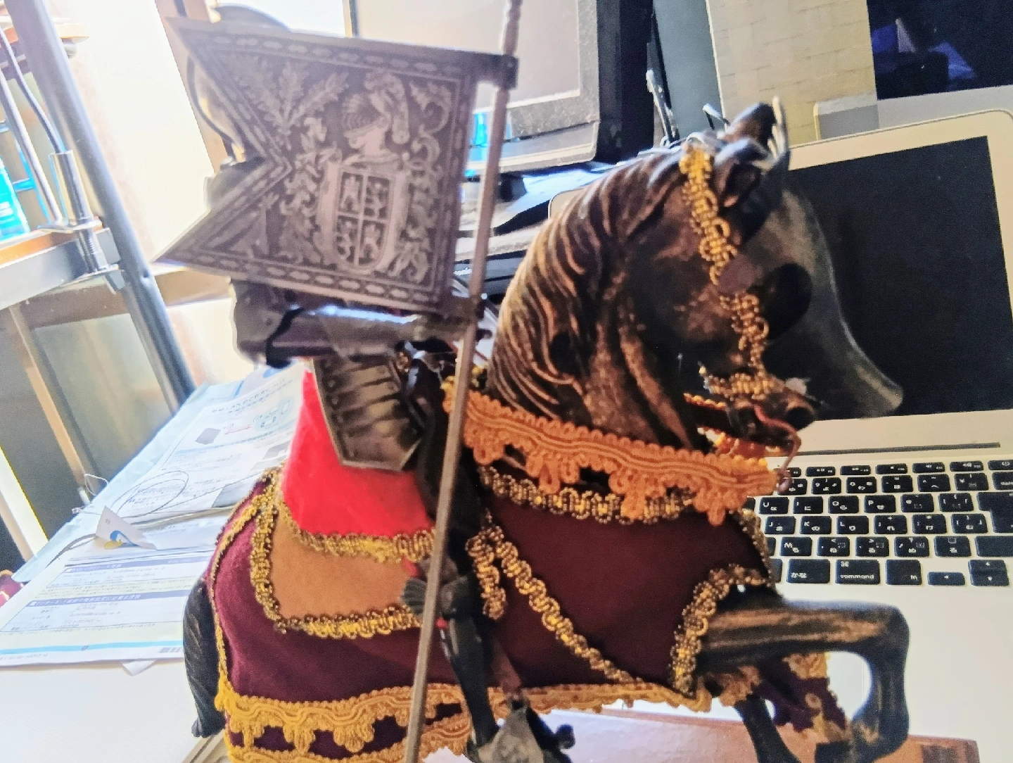 ご覧頂きありがとうございます。 35年前にスペインの高級雑貨店にて購入したドン・キホーテ像です。 金属や木材を用いてかなりズッシリしています。恐らく3〜5kgかと思います。 鎧や馬の尻尾は少し動きます。 甲冑のマスクは取れません。 デスク上や暖炉の上等に飾るときっと高級感が増しますよ。 別出品の西洋甲冑を纏った騎士像もセットでご購入頂けましたら、合わせて8000円に致しますのでご検討ください,