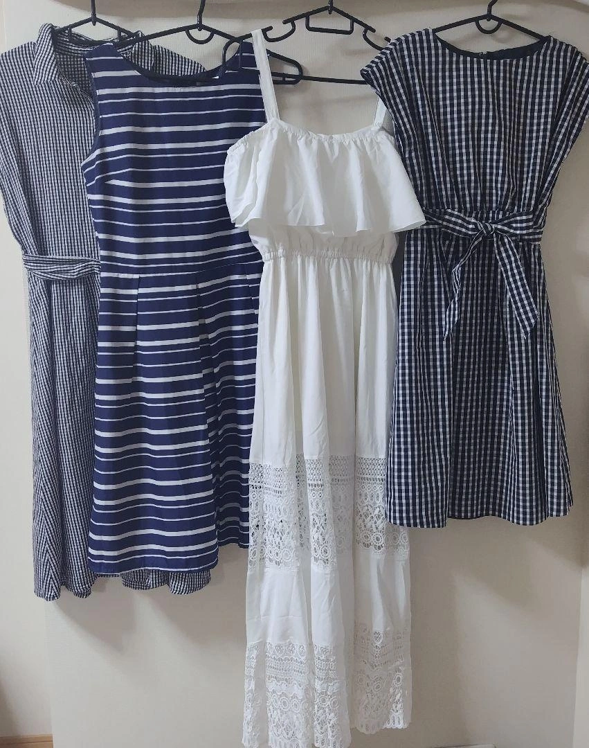 レディース衣類まとめ売りです。 Sサイズ、Mサイズが中心です。 数が多いため、細かく検品できていない点があるかもしれません。ご了承ください。その分、価格を抑えています。 中古品ですが、できるだけ綺麗な状態の物を選んでいます。ご理解いただける方にお願いいたします。 撮影時に確認したダメージは下記のとおりです。 * オフショルロングワンピース 白: 胸元に小さなシミが数箇所ありますが、目立ちません。 * 赤チェックワンピース: 少し毛玉があります。 * 白半袖花柄ワンピース: 着用感があります。 * loulou willoughby 深緑の巻きスカートとクリーム色のスカートは使用感があります。 お写真では25点とありますが、24点となります。 ご希望の方はお気軽にご連絡ください。