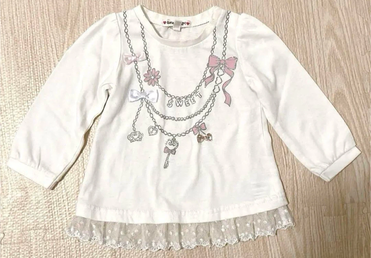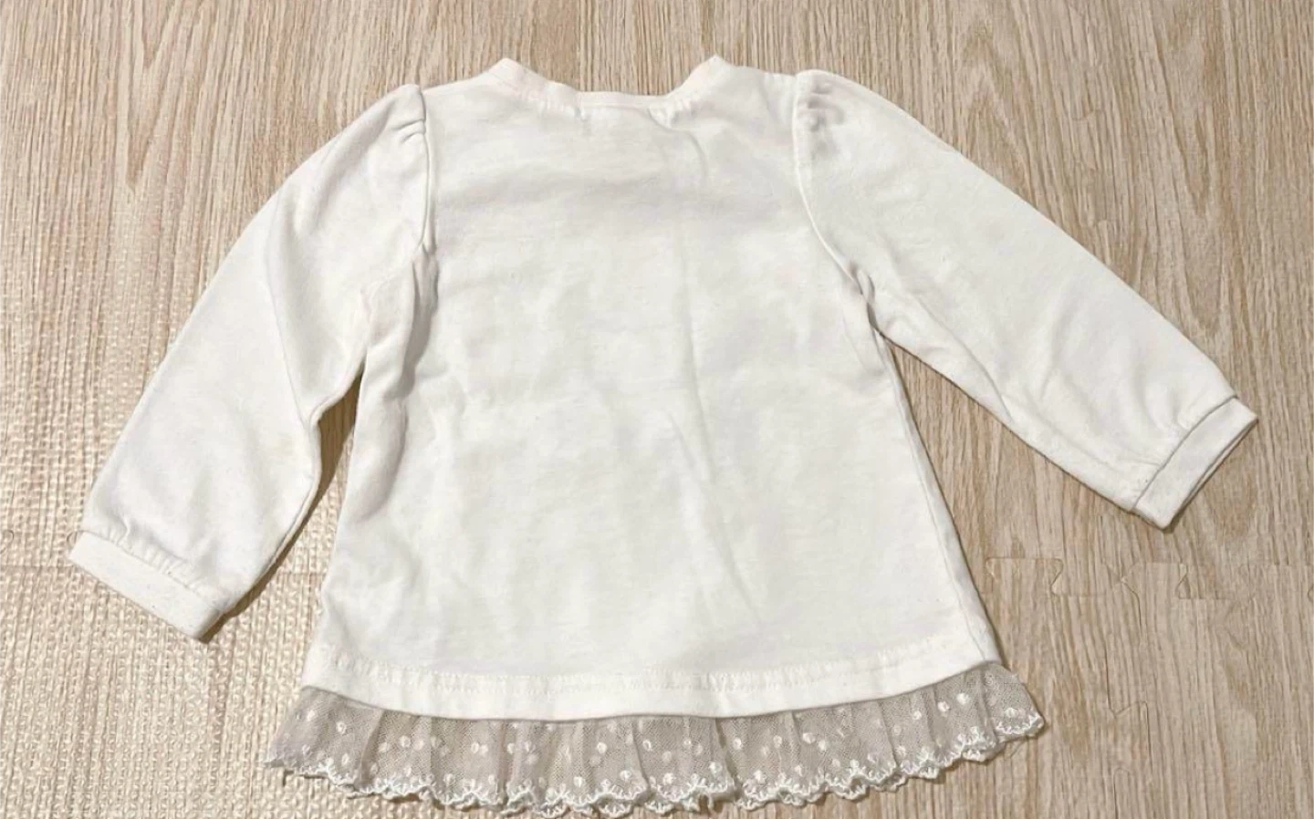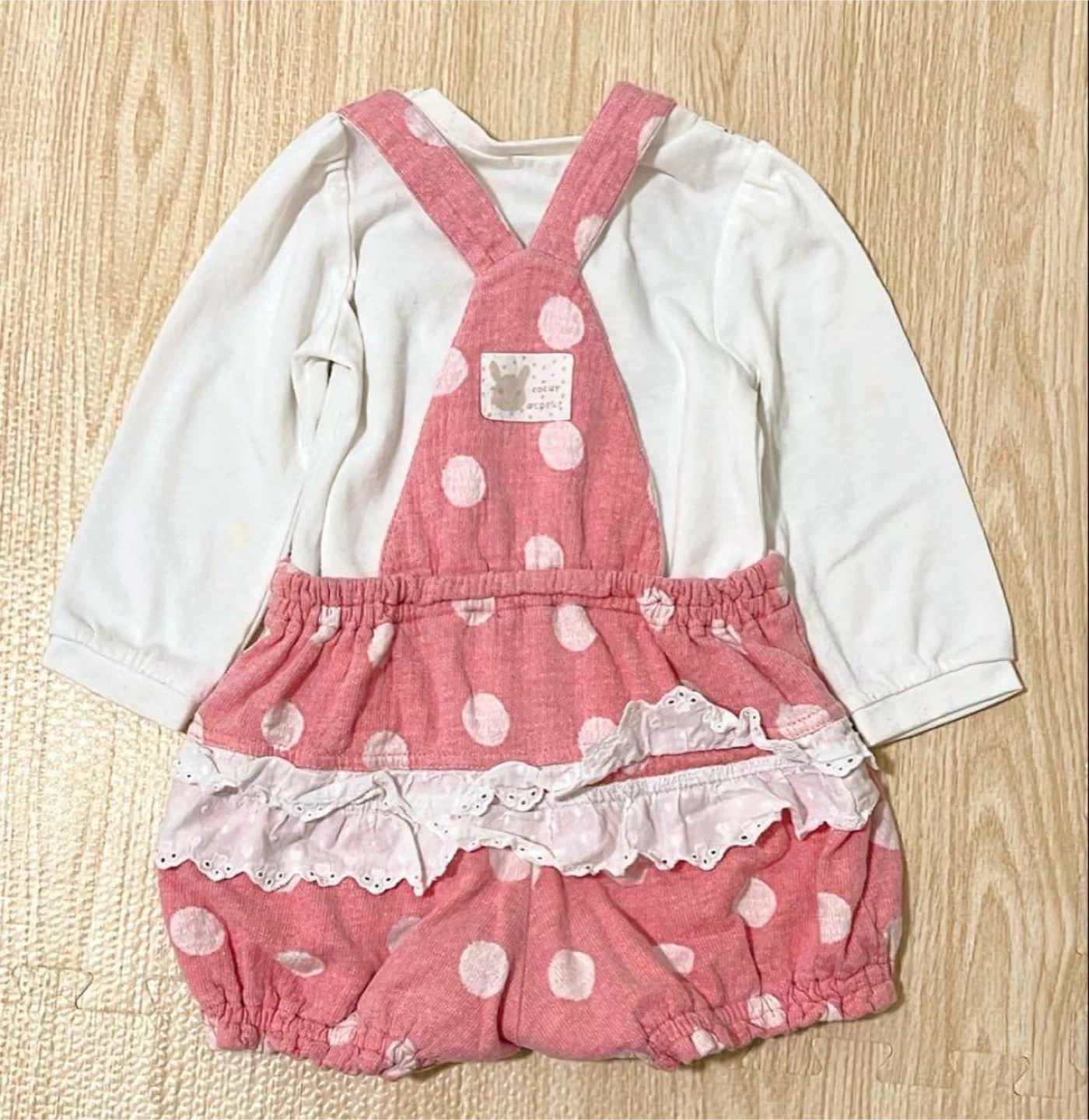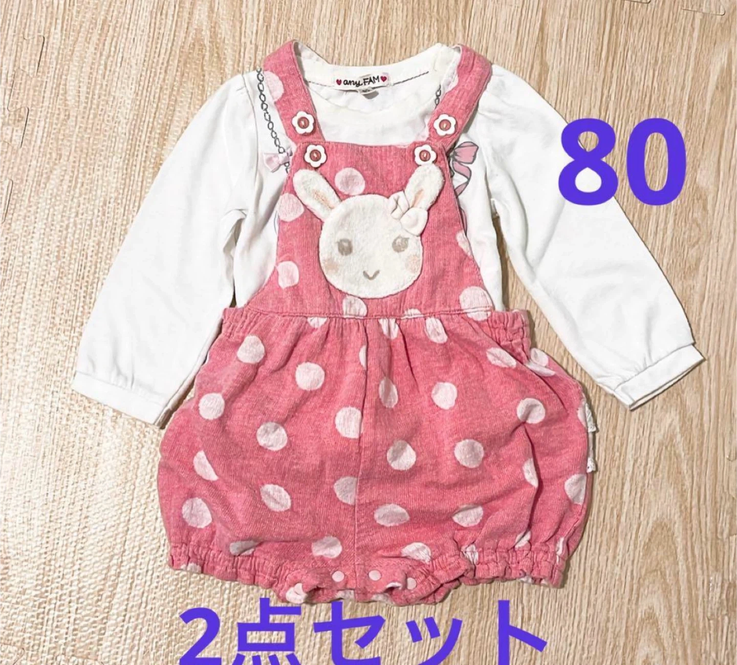 ベビー服セット 2点 anyFAM × coeur a coeur ① anyFAM 長袖Tシャツ(サイズ80・ホワイト) 前面にネクレス風 リボン、鍵、ビジュー風モチーフ付き レースデザインもあり、とても可愛いデザインです。 ② coeur a coeur ジャンパー風 ロンパース(ピンク) うさぎのアクセントが付いていて、可愛さアップ100% ロンパースタイプなので、おむつ替えもラクラクです。 ジャンパーはここで購入品、Tシャツは自宅保管品です。 どちらも目立った傷や汚れはありませんが、少し毛羽立ちがあります。 ★カメラや光の関係で、実物と写真の色味が多少異なる場合がございます。 あらかじめご了承ください。 ☆保管時のシワなどはご了承ください(*..)” 小さく畳んで発送いたします。 ペット、喫煙者はおりません。 ご覧いただきありがとうございます。 ご検討よろしくお願いいたします()