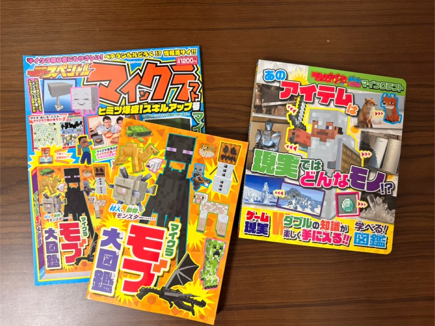 マイクラの図鑑他、3冊のセットです。 うち2冊はムックとその別冊付録です 貰い物ですが子供が興味を示さず、ほぼ新品です 【情報】 タイトル:てれびげーむマガジン ゲーム図鑑 かんたんマイクラフト あのアイテムは現実ではどんなモノ!?