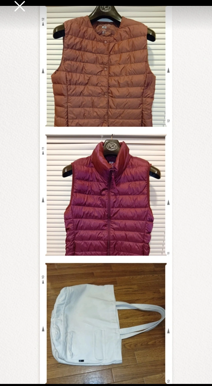 そんなに遠くなければバイクで指定場所に配送いたします【朝昼晩夜中、何時でも大丈夫ですのでご相談ください】 ★引越しの為に季節外れですがユニクロウルトラライトダウンベスト レディースMサイズ2種(1回使用)定価¥4,990×2 ★ROOTOTEのトートバッグ白代官山で購入。(1回使用¥3,900購入)レディース メンズ マチ キャンバス 布 コットン 無地 シンプル ショルダーバッグ おしゃれ 大人 かわいい 大きめ 大容量 手提げ、中にポケット3つあります ★ROOTOTEの大きさ 横幅 48㌢ 縦幅 33㌢ 持ち手 27㌢