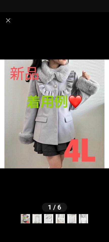 新品 ヨークフリルミドルコート 4L 量産型地雷系ロリータ 今年買いましたが、一度も着なく。 通常価格(8500円)しました。 ヨークフリルミドルコート 4L グレイッシュパープル 淡紫 着丈約65㎝ 身幅約64㎝ ☆胸元のたっぷりフリルとキラキラのビジューが可愛すぎるコート♡ 袖と襟のファーは着脱可能です。 平日 朝10時半〜夕方4時まで 土曜日 朝6時〜朝12時まで 日曜日、祝日不可 雨☔の日も不可