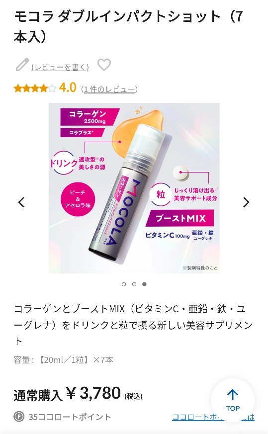 すべて見る5月新商品☆新品☆定価3780 ロート製薬 MOCOLA ダブルインパクトショット モコラ コラーゲン ビタミン 鉄 サプリ
