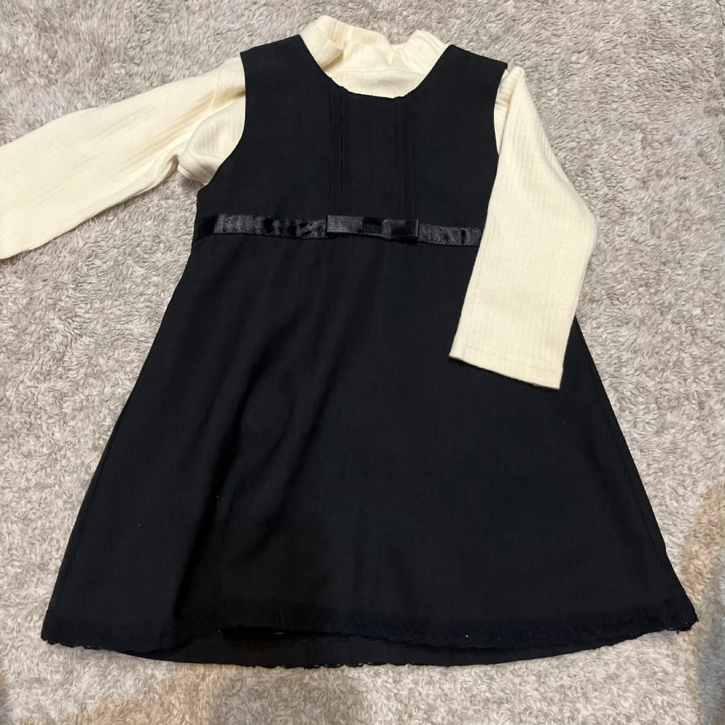黒色のワンピースです。 ・色:ブラック、オフホワイト(インナー)、ホワイト(カーデ) ・セパレート ・状態:使用感少なめ 中古品であることご了承ください