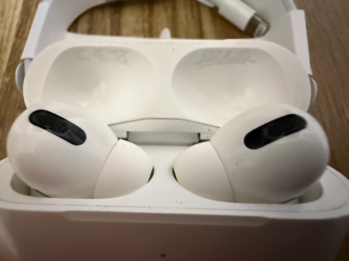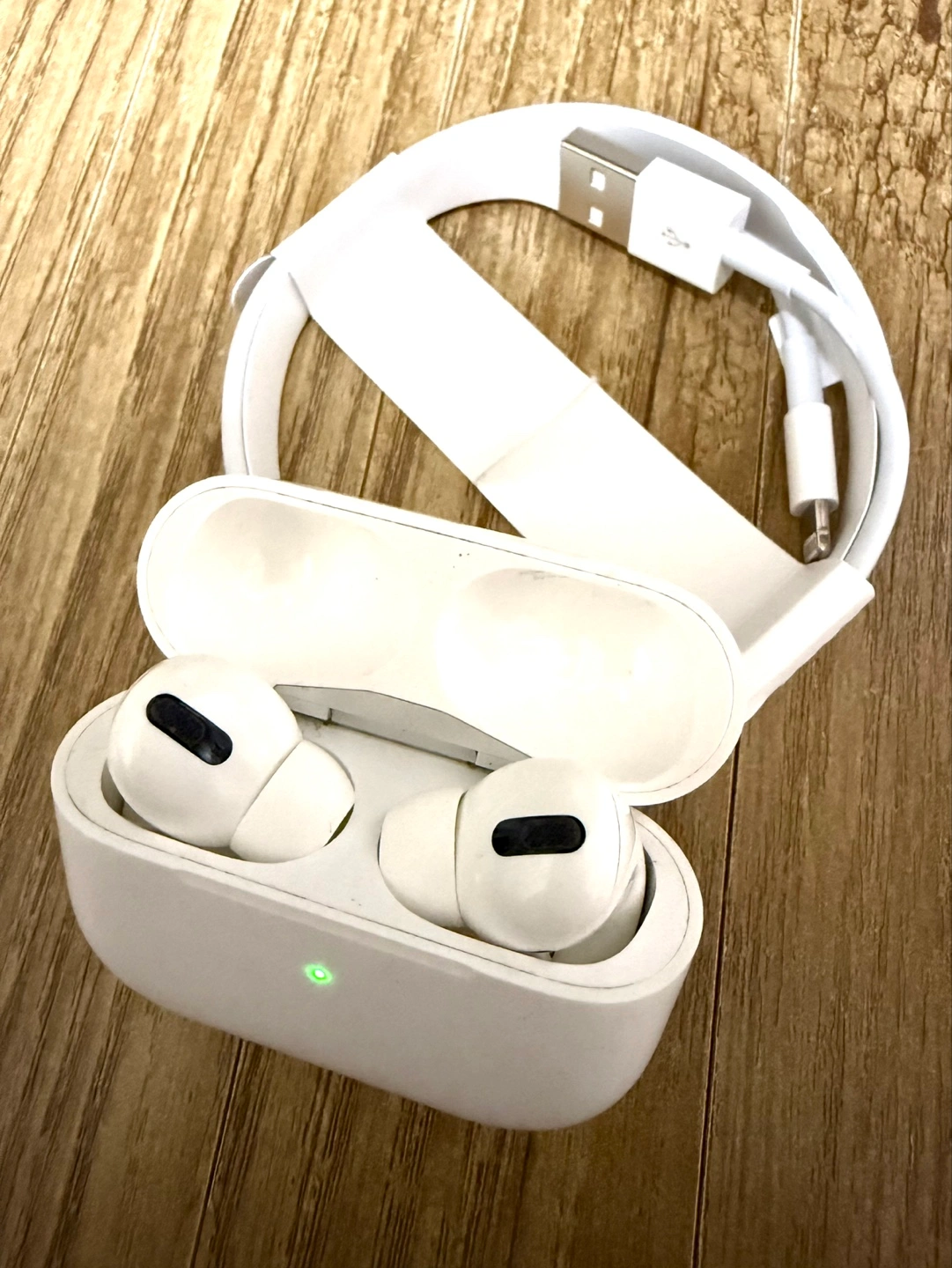 2年弱ほど使用 AirPods Pro1次世代となります。 お箱もございます。 充電コードLightningケーブルは 新品未使用です。 写真掲載2枚目シリアル番号記載 ⚪️充電ケースにカバーを付けて使用しておりました。 ケースにカバー跡がついてる箇所がございます。 ⚪️動作確認済みですが右耳イヤホンが 音割れ.ノイズの症状がございます。 Apple等に修理されるなどで改善されるかと思います。 ⚪️充電済みですのでお使いの携帯に接続したら すぐにご使用いただけます。 できる限りの清掃拭き取りはいたします。 アルコール消毒含む 音割れが右耳支障がありますがまだまだご使用いただけますのでAirPodsをご検討の方ぜひ┏︎○︎))ペコ 上記にご理解ある方にお譲りさせていただきます。 ノイズを除けばまだまだ十分にお使いいただけるかと! ◉削除可能性有り 途中他サイトに出す可能性もございます。 ◉基本上用賀テニスクラブのお渡し 用賀駅対応可 記載はテニスクラブとさせていただきます。 プロフィールご一読お願いいたします。 ◉お問い合わせによるお値引き不可