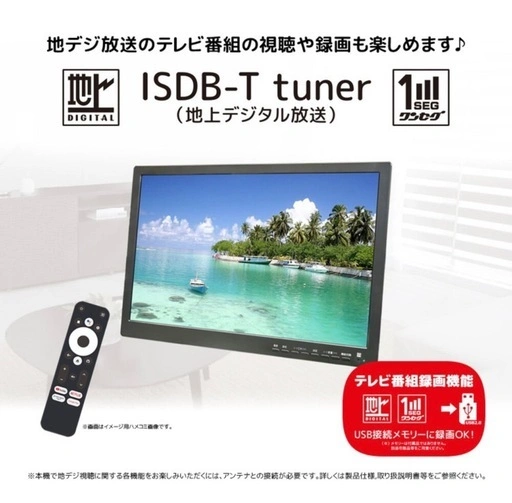 昨年、母と同居する予定で購入しましたが、同居の話がなくなったため、数回のみ使用してそのまま保管していました。 状態がとても良いので、必要な方にお譲りいたします😊 📺 商品の特徴 ・19インチ液晶テレビ ・AndroidスマートTV(YouTube/Netflix/Prime Video対応) ・スマホ連動、Bluetooth対応 ・Chromecast内蔵でスマホ画面を簡単にミラーリング可能 ・地デジチューナー搭載 🧰 付属品 ・本体(画面保護フィルム付き) ・充電ケーブル ・ACアダプター ・地デジ受信用アンテナ 🔎 補足 ・起動確認済みです。 ・モニターには保護フィルムが付いたままなので傷なし。 ・説明書はありませんが、以下のメーカー公式サイトでご確認いただけます: 👉 https://roommate.life/products/ot-pst19ak/ 💡 こんな方におすすめ ・一人暮らしや寝室用のセカンドテレビを探している方 ・YouTubeやNetflixなどを気軽に楽しみたい方 ・モニター兼用で省スペースに使いたい方 ご希望の方はお気軽にご連絡ください。