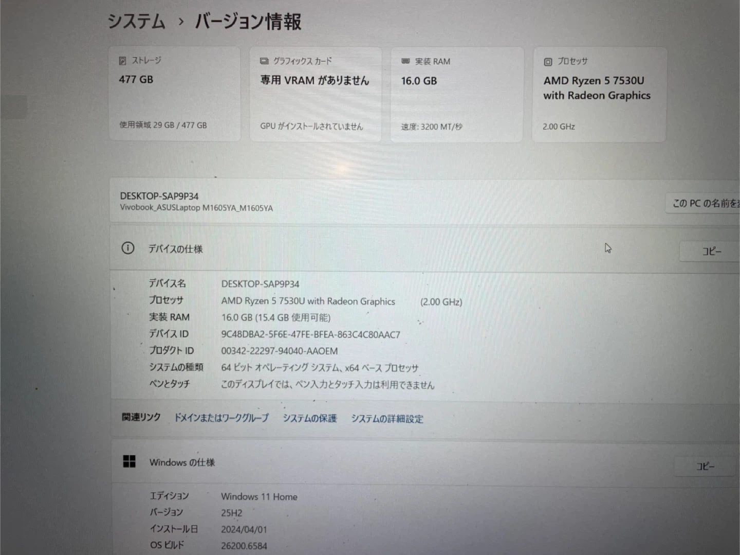 Lenovo ThinkPad Ryzen5 7530U 16GB 256GB
