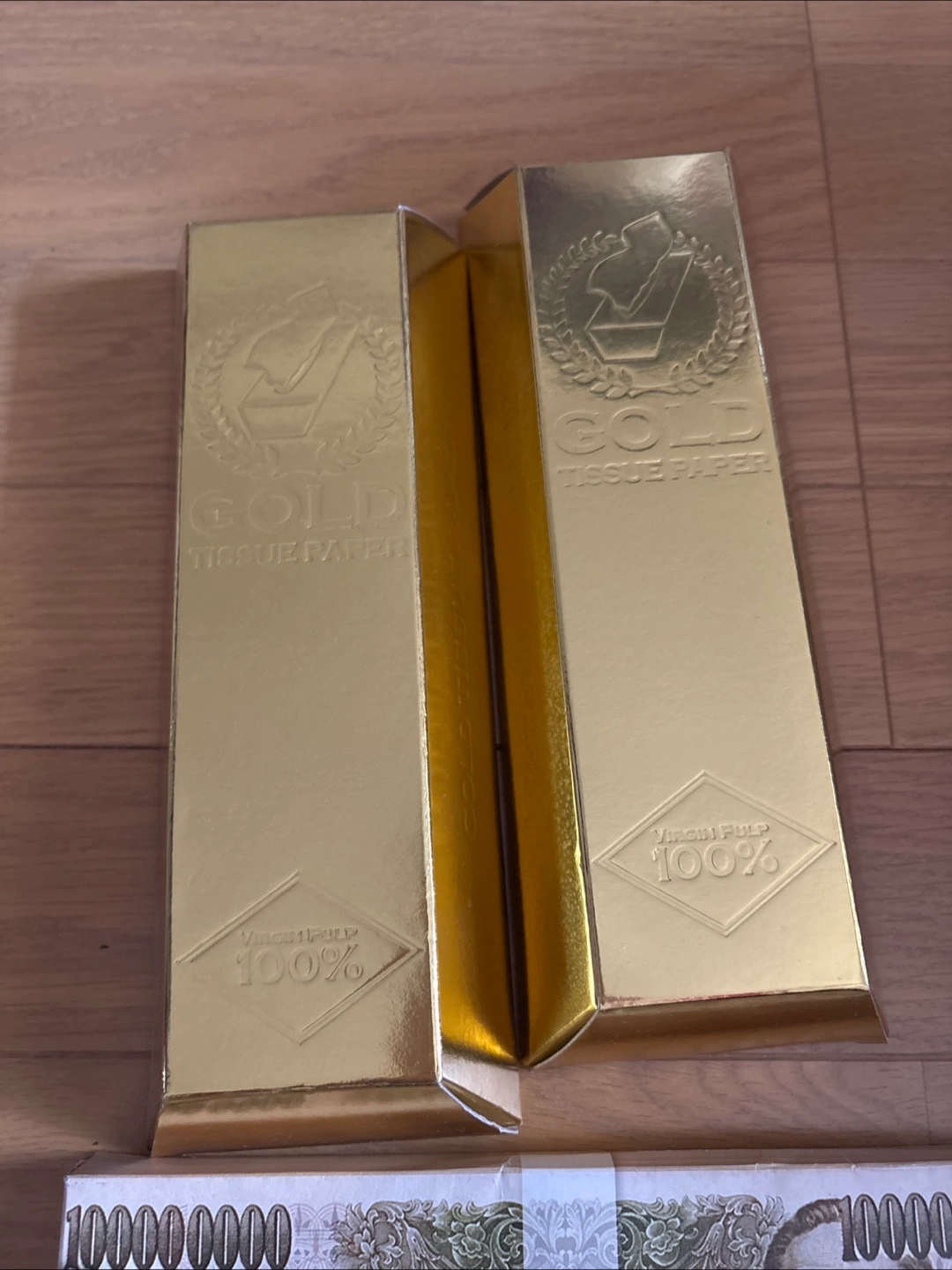 ・BOXTISSUES 壱億円ボックスティッシュ ・GOLD TISSUE PAPER ・ティッシュ30個入り 一箱500円のゴールドティッシュです。 景気づけにいかがですか?