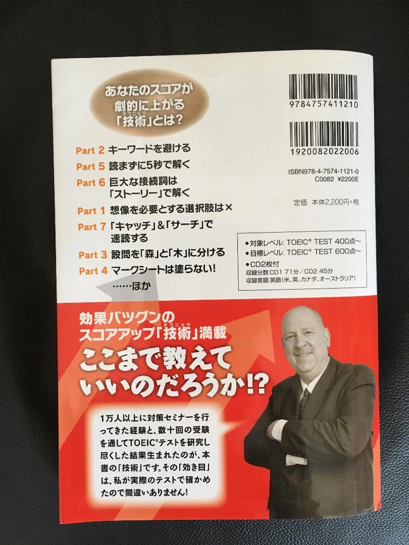 新TOEICテスト直前の技術 ロバート・ヒルキ/ポール・ワーデン/ヒロ前田 定価: ¥ 2,420 CD2枚付きで、書き込みなどは何箇所があり、やや使用感もあります。これから英語スキルを上げる方に! 11日間即効プログラム ご希望の方はお気軽にご連絡ください。