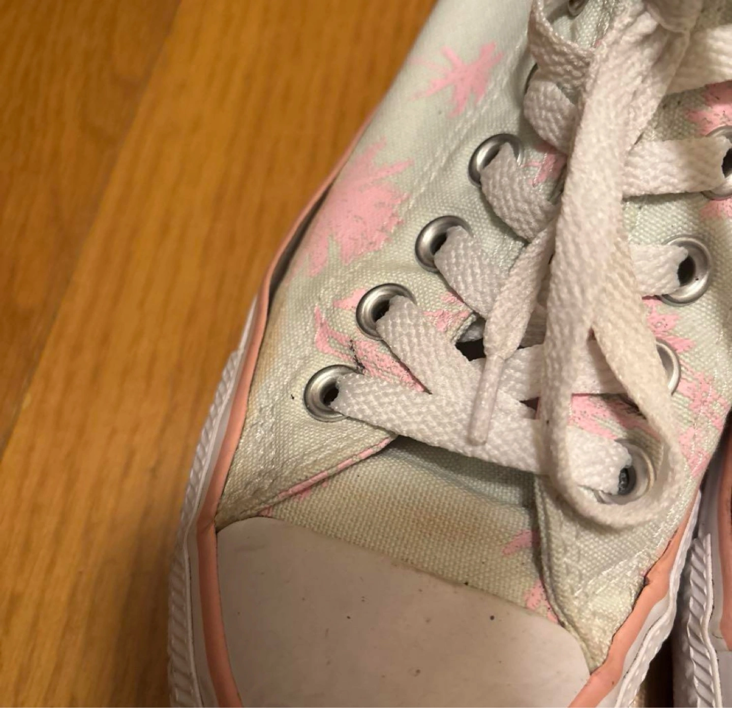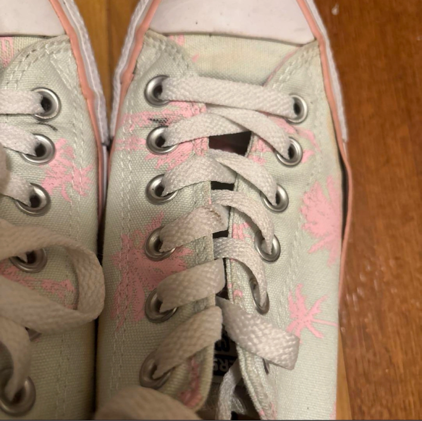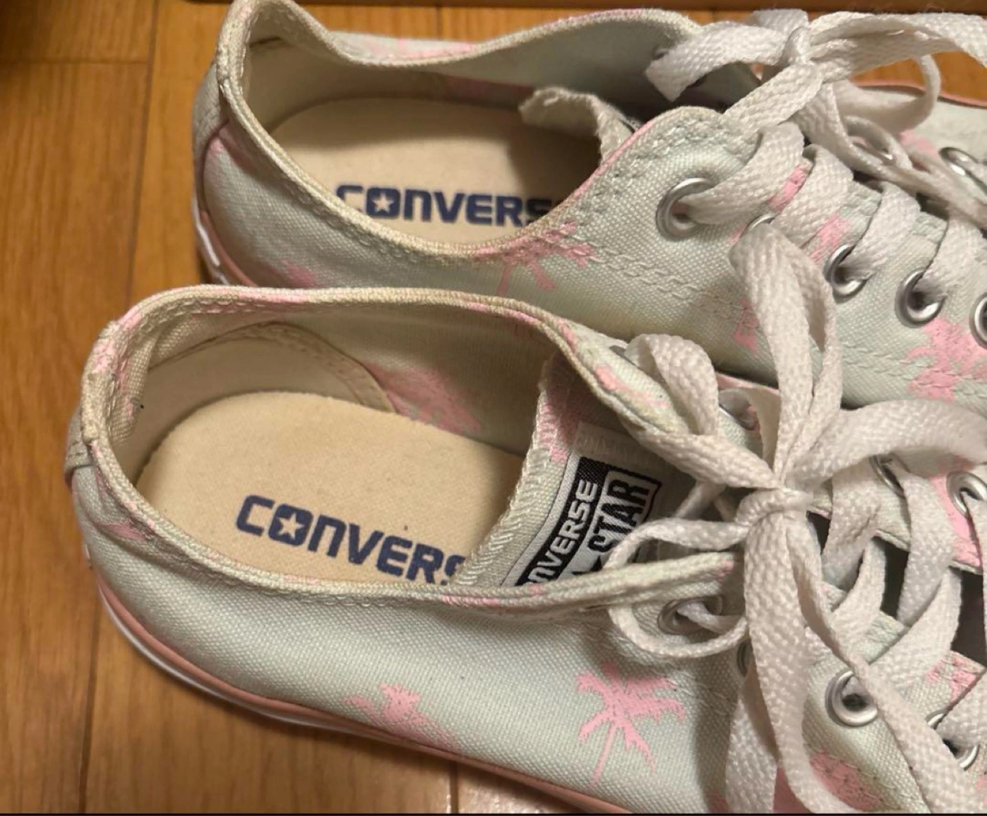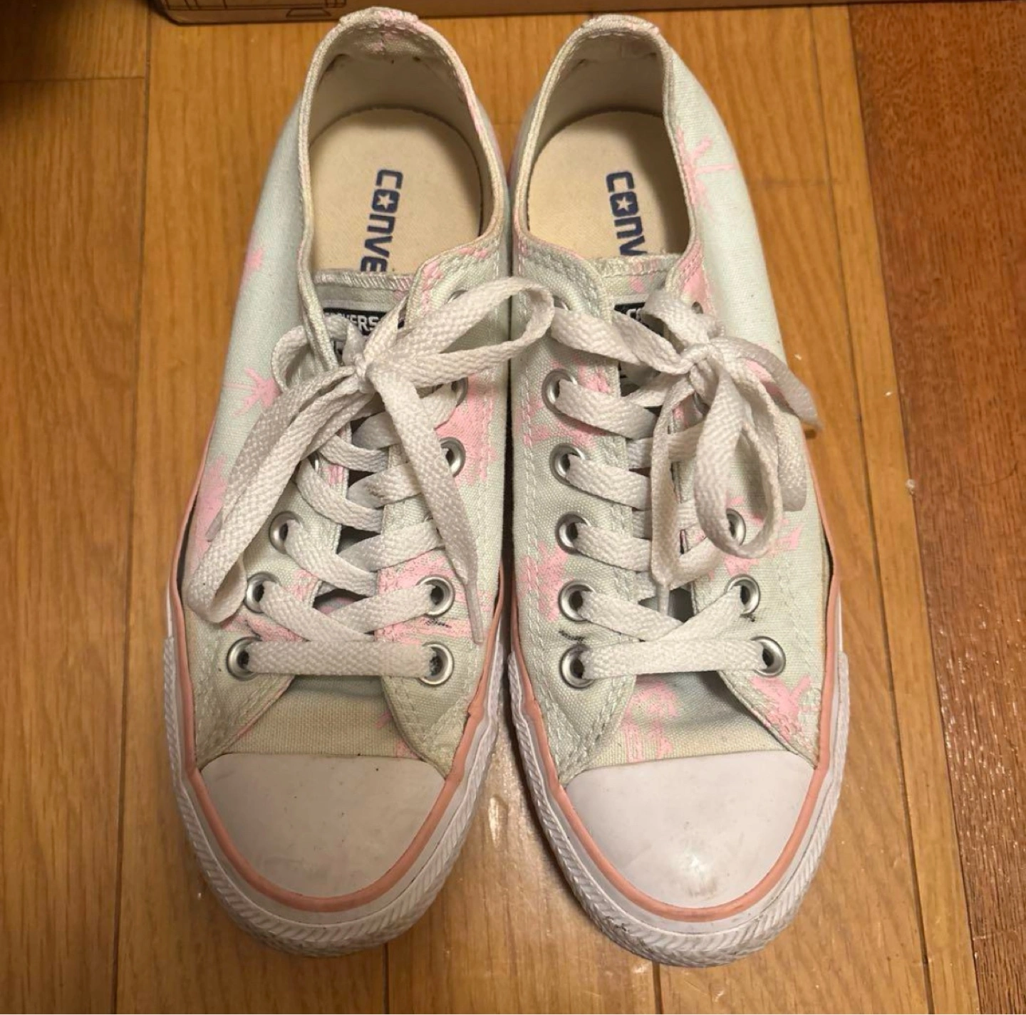 Converse All-Star 23.5cm サイズが合わず短時間数回使用です 中の文字もしっかりあります まだまだご利用いただけると思います。 右足の部分に浮きがあります パステルグリーンのようなお色にピンクのヤシの木?がプリントされています 中古 スニーカークリーニング済み #Converse #ConverseAll_Star カラー···パステルグリーン 履き口···紐 柄・デザイン···無地 汚れ・破れ・臭いなど···なし 素材···キャンバス