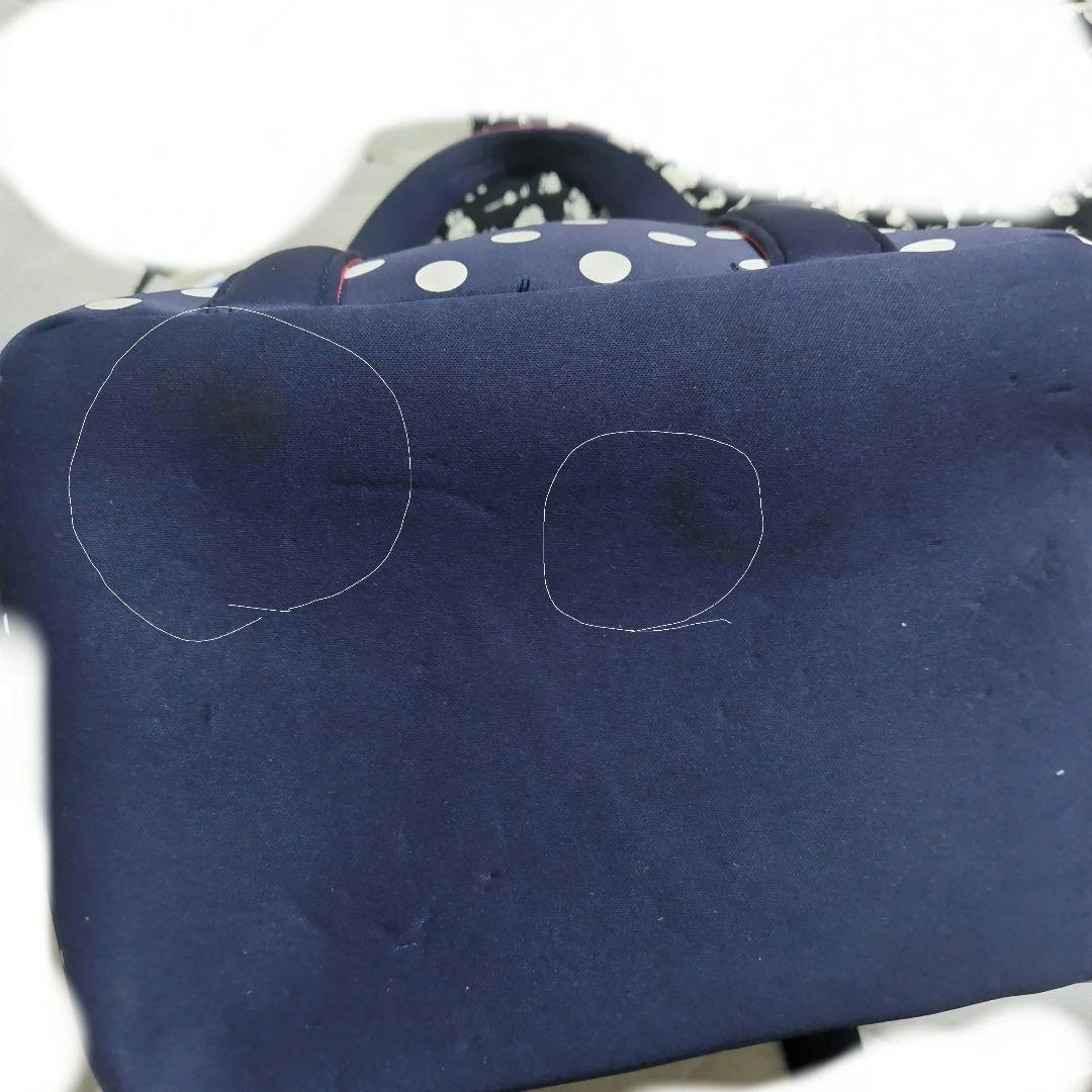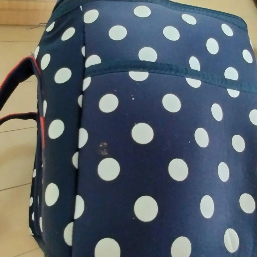 DSK/ディーエスケーの保冷バッグです。 ネイビーのドット柄。 サイズは幅30×奥行19×高さ21cmです。 ダメージが多いですが、使用には問題ないかと思います。 バッグ本体に汚れや底にシミがあります(白丸で囲ってあります)。 長期間の保管でアルミにシワや折り目などがあります。お写真で状態をご確認ください。 ・インナーバッグ(保冷アルミ)を取り外し、スナップボタンを付けるとトートバッグになります。 ・ドット柄部分はクッション性のある生地です。 ・自宅保管品になりますので、中古品としてご理解いただける方にお譲りしたいと思います。神経質な方はご遠慮ください。 ご希望の方はお気軽にご連絡ください。