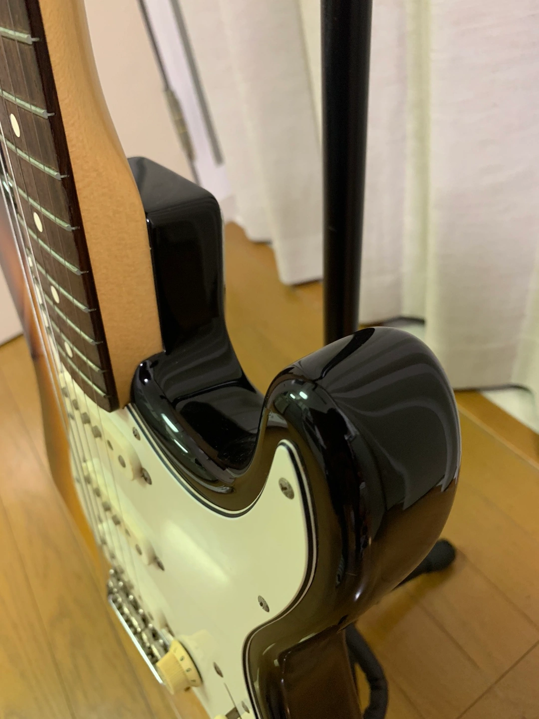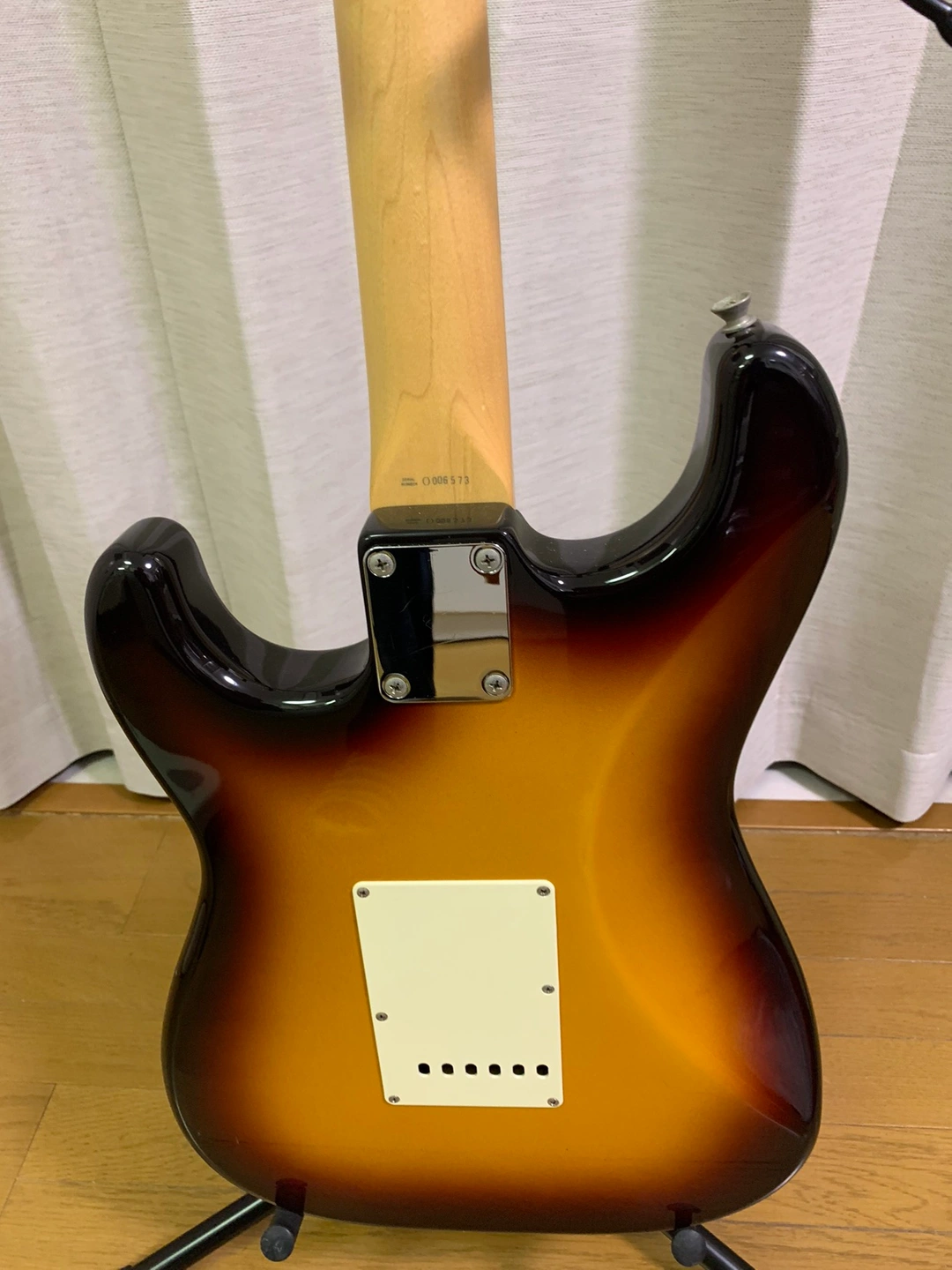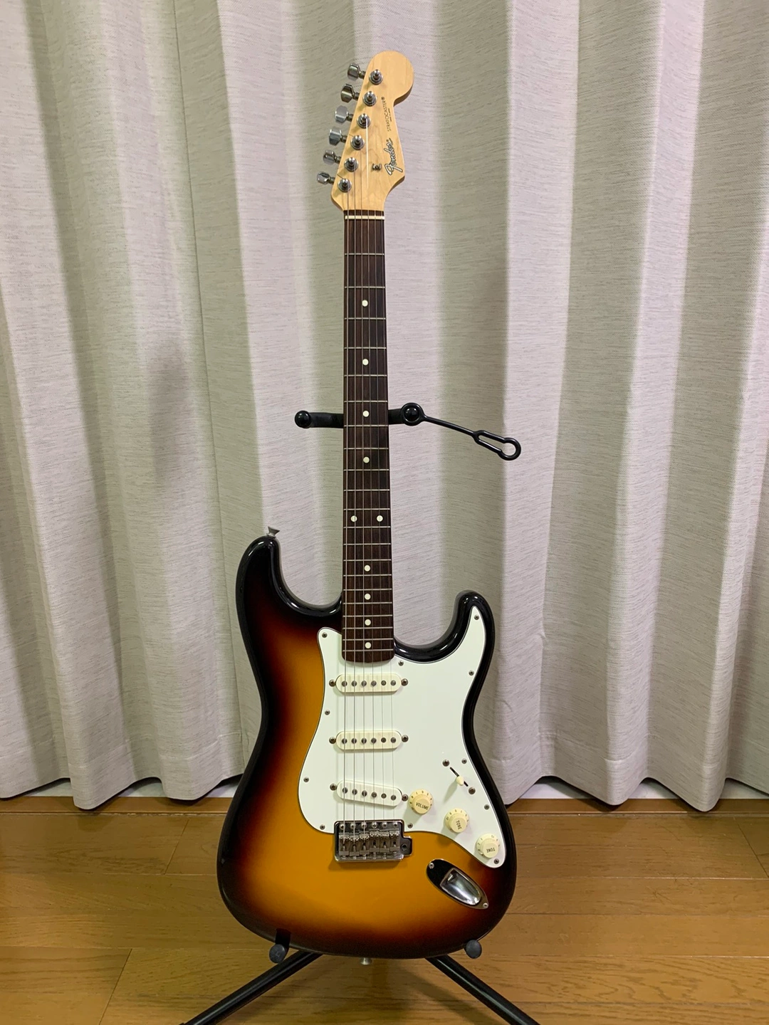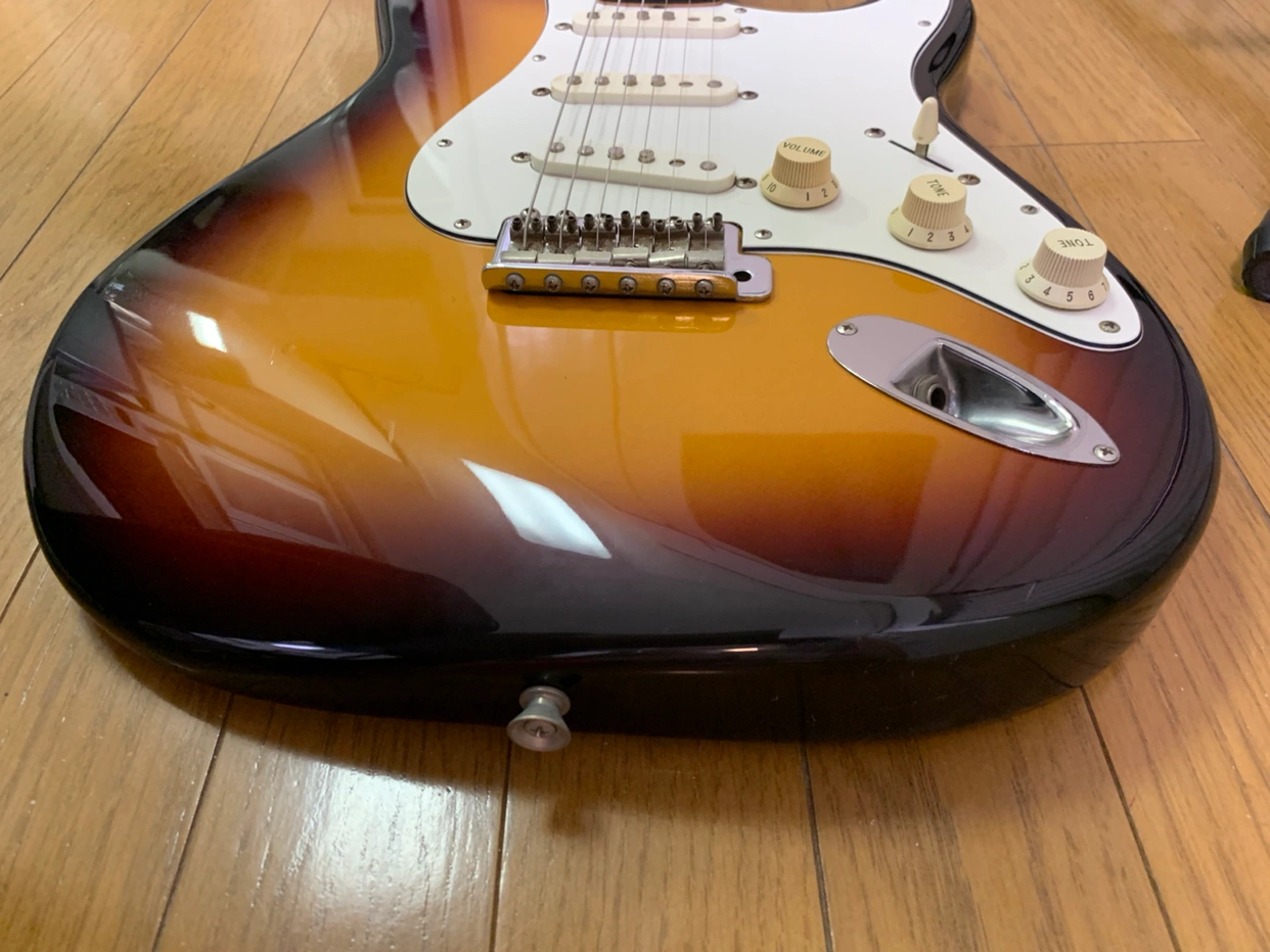 フェンダージャパンストラトキャスター 縦2ミリ横4ミリ程度のキズが一カ所あります。写真(6枚目)にてご確認ください。それ以外は大きなキズは見当たりませんが中古品であることをご理解ください。 付属品(おまけ)としてギター弦3セット、ZOOMエフェクター(ディスプレイ部キズあり)、Marshallミニアンプ、シールドケーブル2本、トレモロアーム、ストラップ、ギタースタンド、譜面台、ギターメンテナンス用スプレー3種(3種の平均残量は半分程度)をお付けします。付属品(おまけ)が不要もしくは一部不要の場合はお申し付けください。但し不要の場合でもギター本体の価格は変動しません。また付属品(おまけ)についてのクレーム等はご容赦願います。 ギターソフトケースは中面がボロボロなので殆ど価値はないと思いますが運搬時の保護用カバーとしてお付けします。 受け渡し場所は豊島北スポーツ多目的広場近辺または王子駅近辺を希望しています。