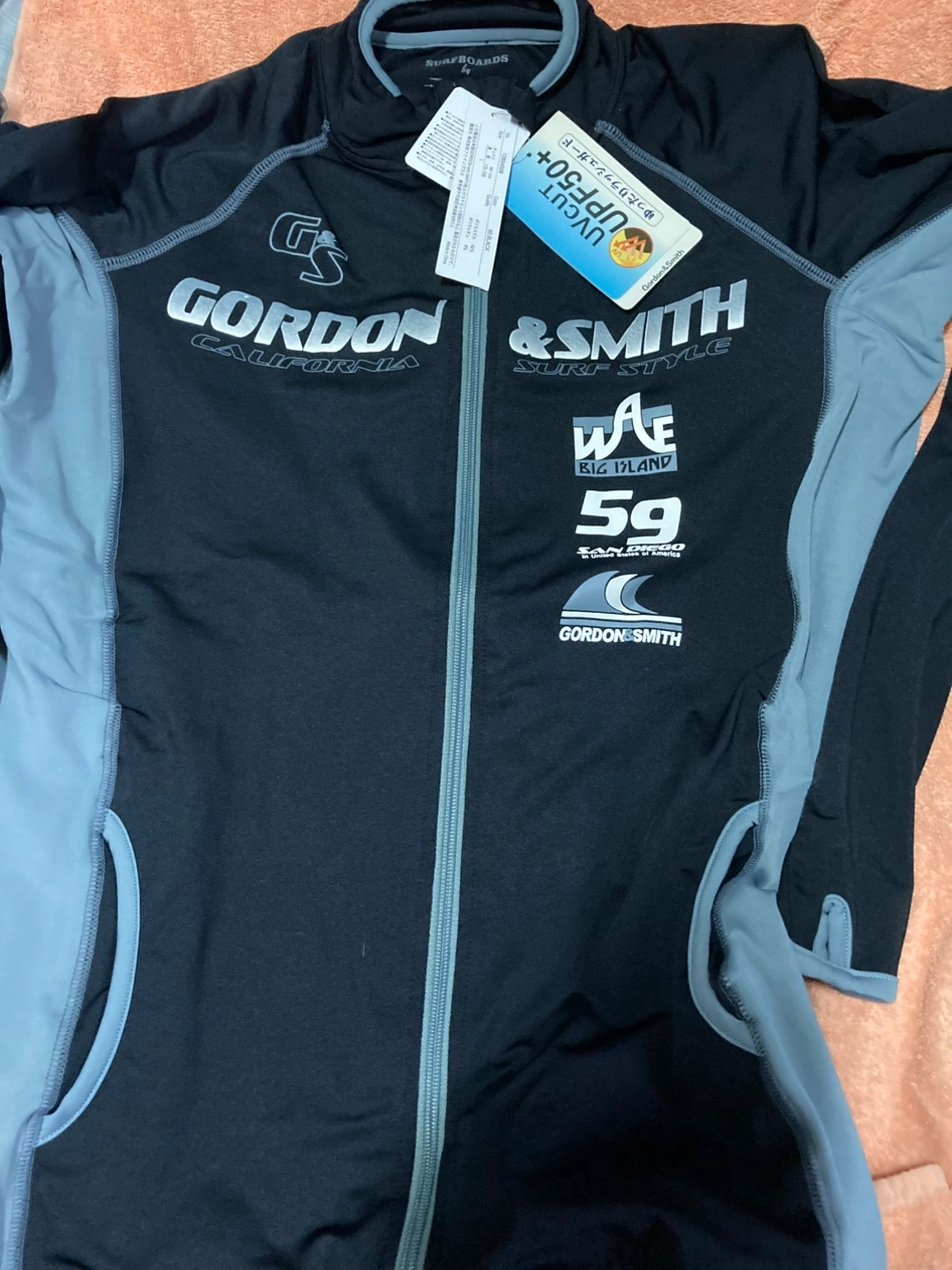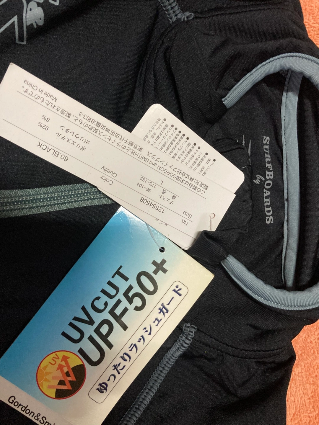 ・ブランド:GORDON & SMITH ・カラー:ブラック ・サイズ:L(胸囲96-104,身長175-185) ・UVカットUPF50+ ・ポリエステル92%、ポリウレタン8%