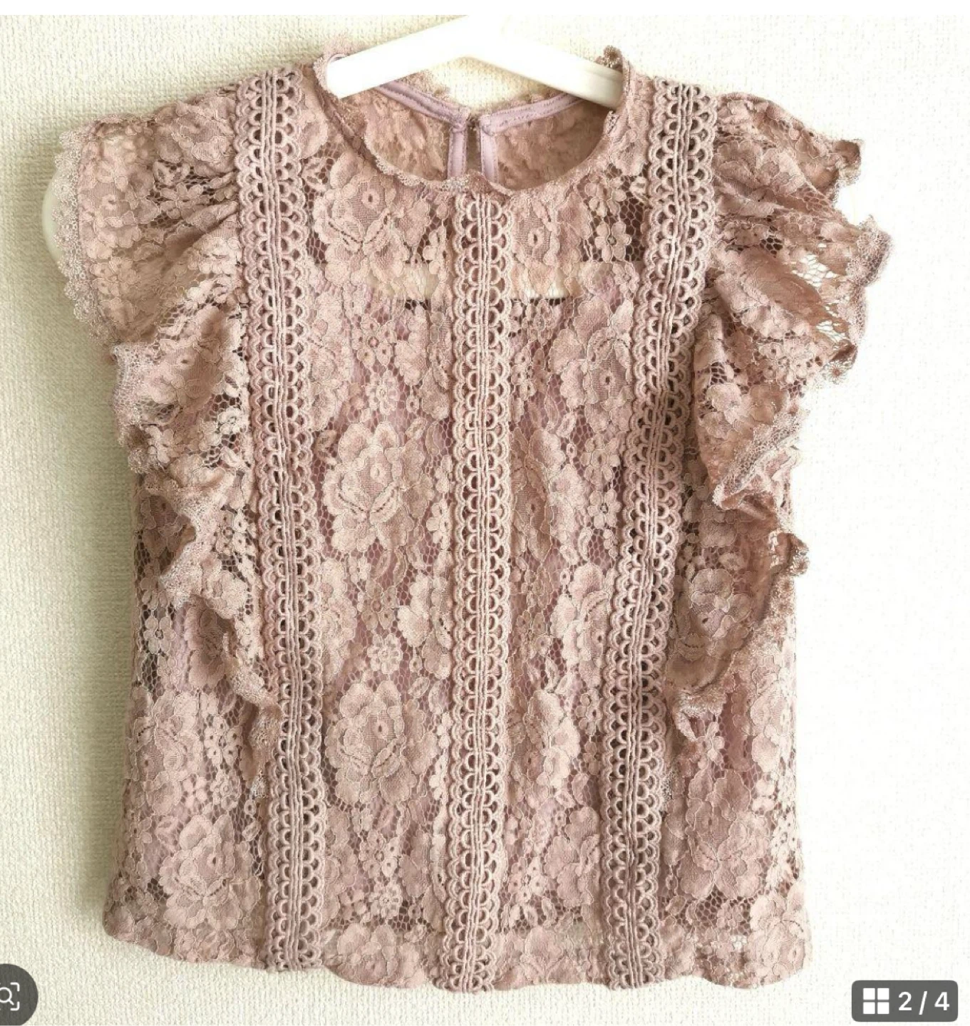 GRL フリル付のレース素材 ノースリーブブラウスです。 - 色: アンティークピンク - 素材: レース - デザイン: 肩にフリル - スタイル: ノースリーブ - バックスタイル: ボタン留め ご希望の方はお気軽にご連絡ください。