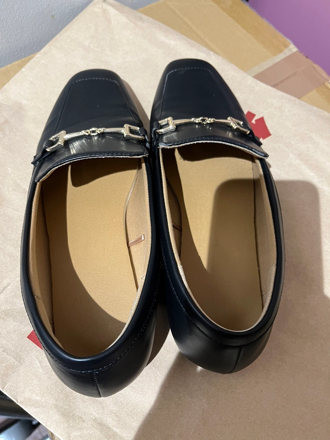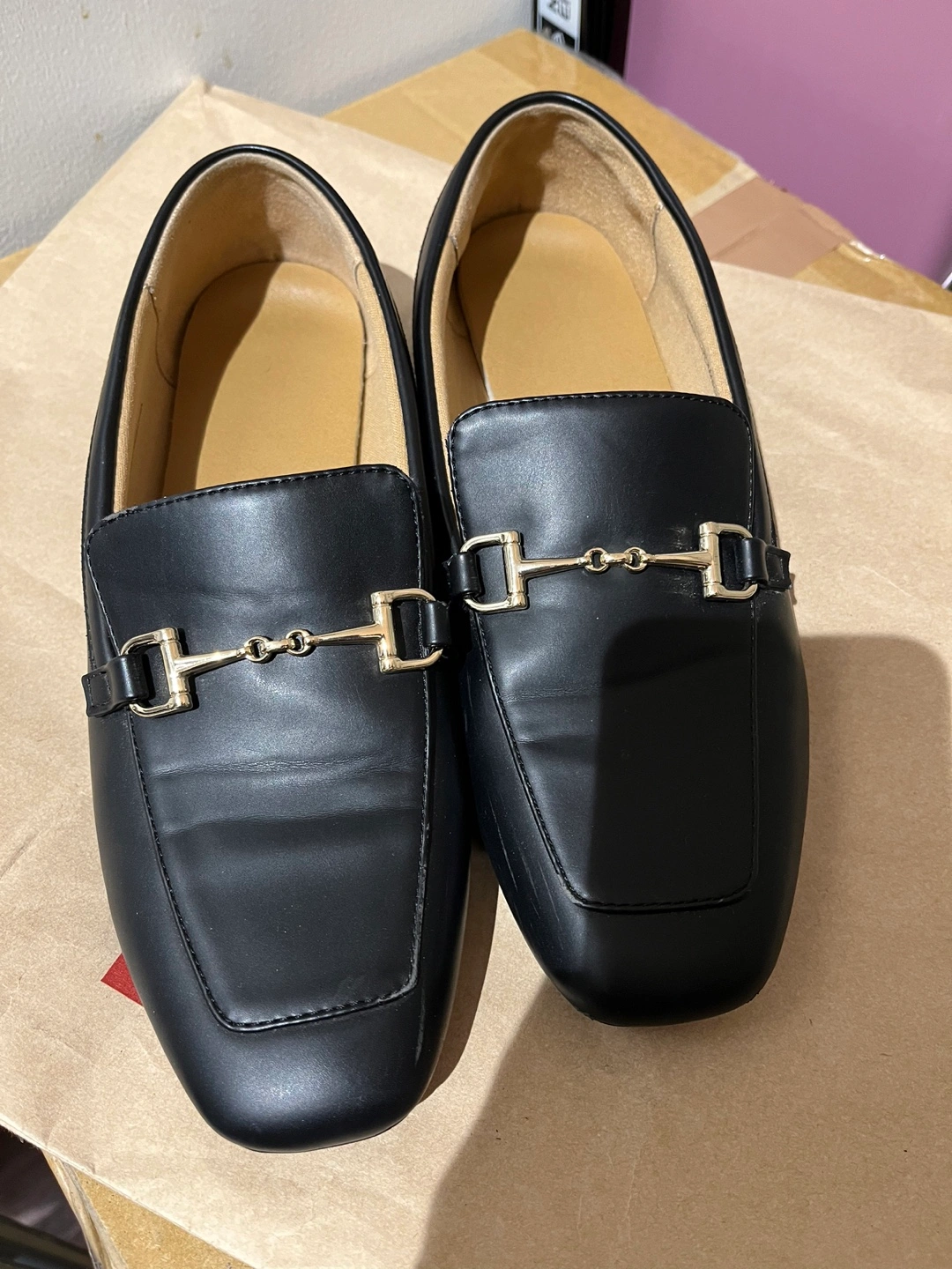 GU🌟ビットローファーです。 サイズ XL カラー 黒 ブラック パンツにもスカートにも合わせやすい ちょっとしたお洒落や 秋の装いにいかがでしょう?^ ^ 普段 24cm EEE を履いてる私が こちらのXLを履くと余裕あります。 1年ほど履いていたため かかと近くに汚れありますので 写真でご確認のうえ、お問い合わせや ご購入いただけると嬉しいです。 宜しくお願いします。 お取引場所は、 センター北駅、東山田駅、北山田駅 いずれかでお願いします。