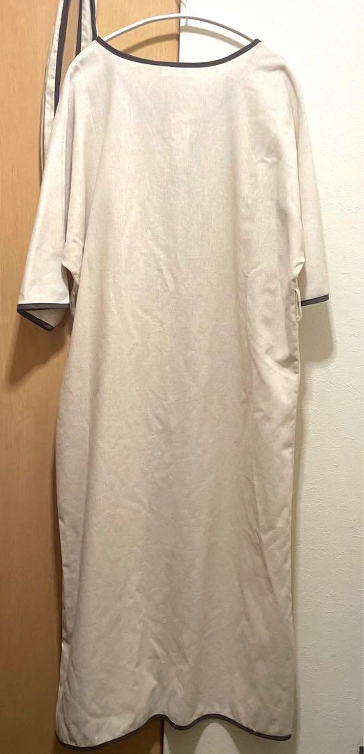 処分お値下げ致しました。 ◉新品・未使用 試着のみ ◉綿・麻素材 5部袖 ◉ポケット無し ◉ウエストリボン・ベルトループ 当方162cm、羽織ってみた所お袖は肘が丁度隠れる長さ着丈は足首がしっかり見える長さでした。 意外とありそうで無いデザインだと思います。 段々と涼しくなって来ましたので中にロンTでも良いと思います。 出来るだけ小さくお畳みしますので梱包に伴うおシワはご了承下さいませ。