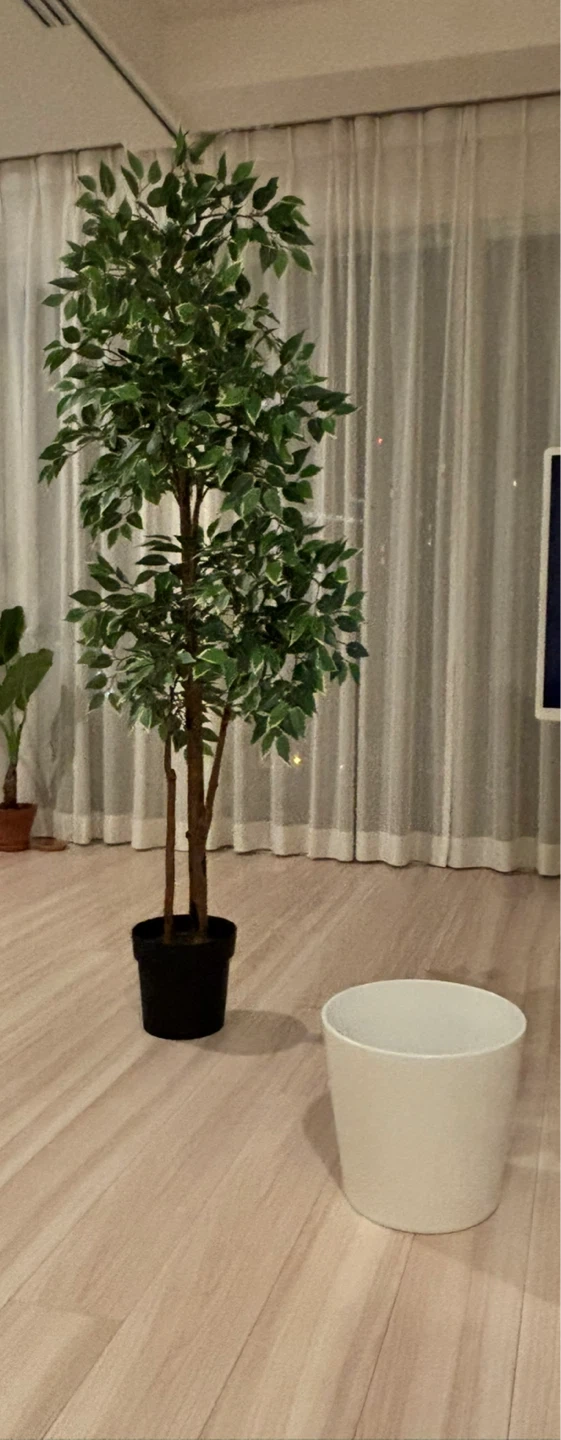人工観葉植物を販売します。高さは約160cmで、IKEAで購入したものです。 白い鉢は陶器製です。 人工観葉植物は2000円、白い陶器の鉢は1000円ですが、セットでご購入いただける場合は2500円でお譲りします。 人工観葉植物は分解可能なので、分解してお渡しします。 有明まで取りに来ていただける方、よろしくお願いいたします。