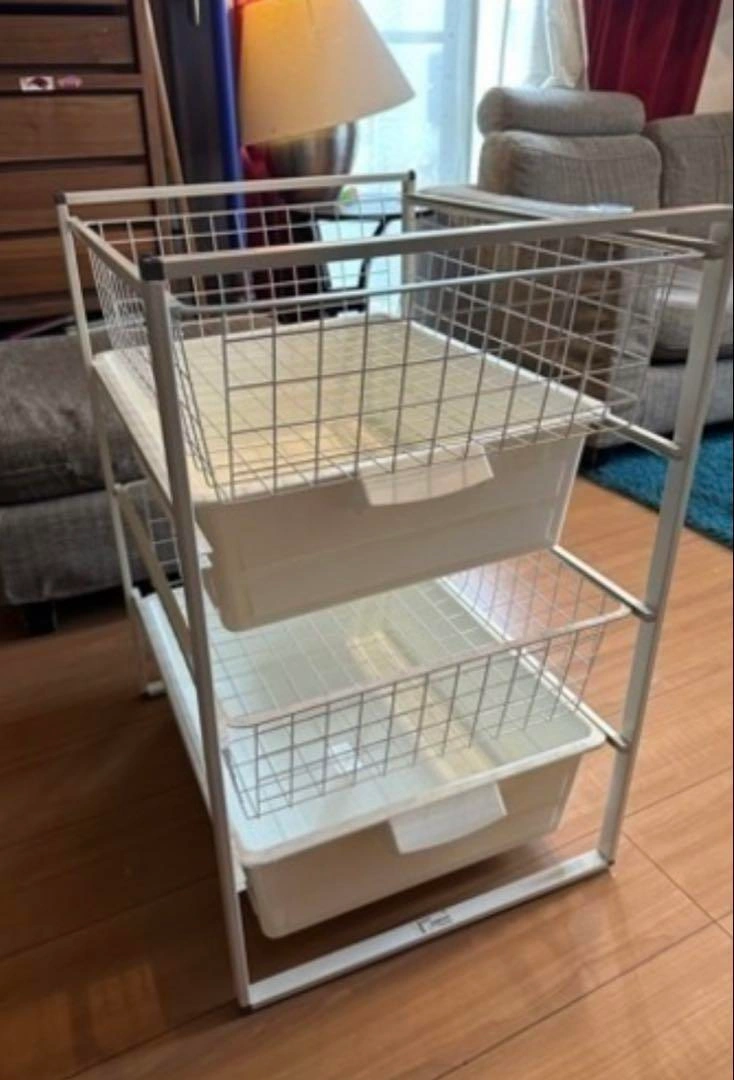 上段にリメイクシートが貼ってあり、剥がれかけています。 滑車にサビがあります。 網が2段、ケースが2段です。 表面に擦り傷、角に欠けがあります。 お引き取りに来ていただける方にお願いします。場所は東京23区内です。 ご覧いただきありがとうございます。 ご希望の方はお気軽にご連絡ください。