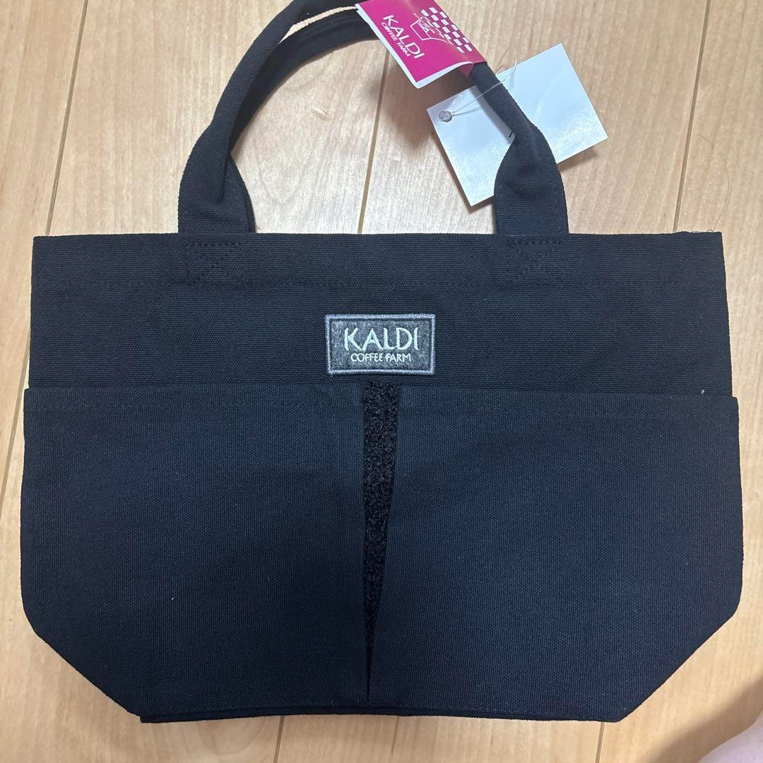KALDI 黒 ハンドバッグ 外側ポケット付き