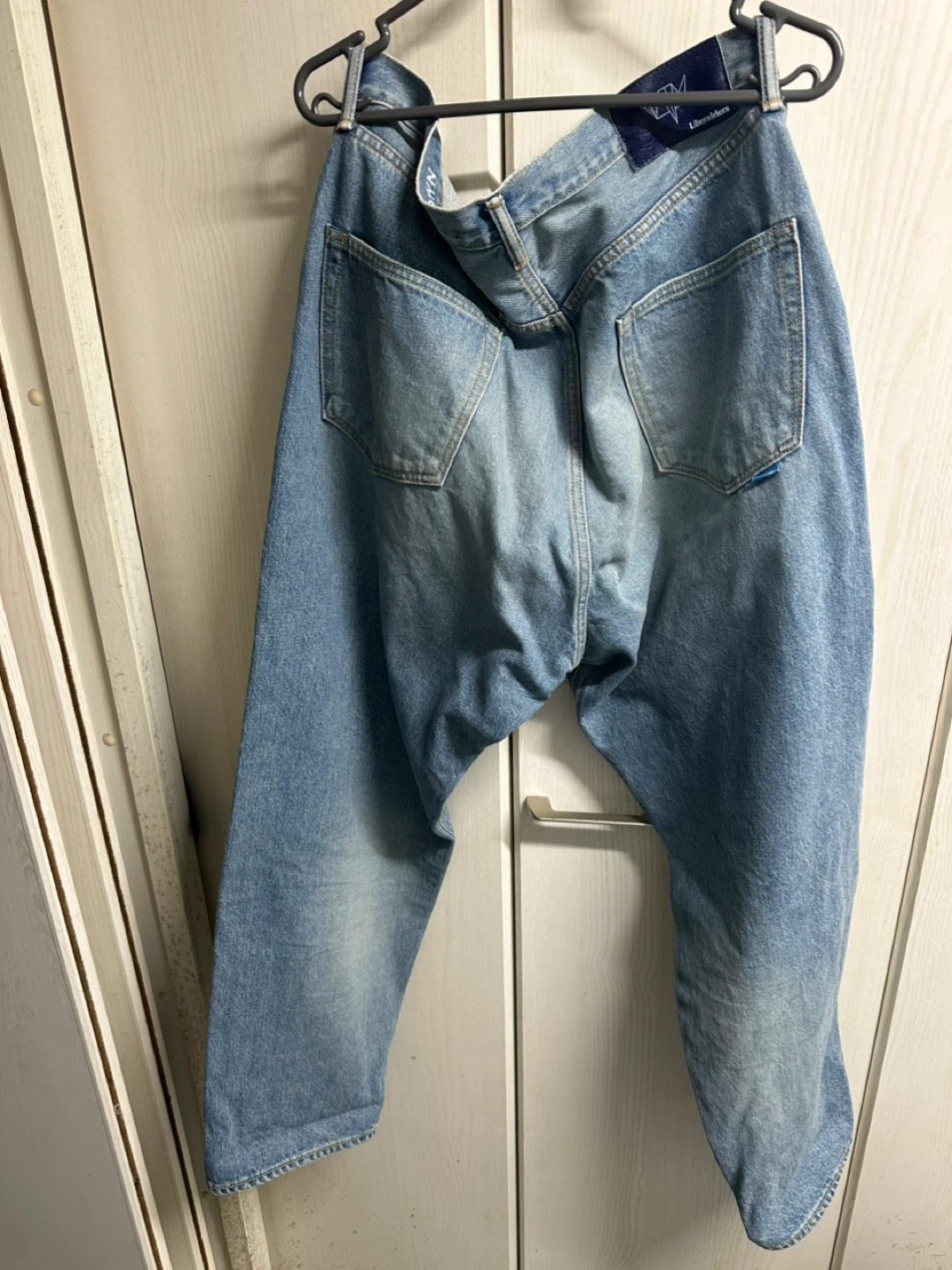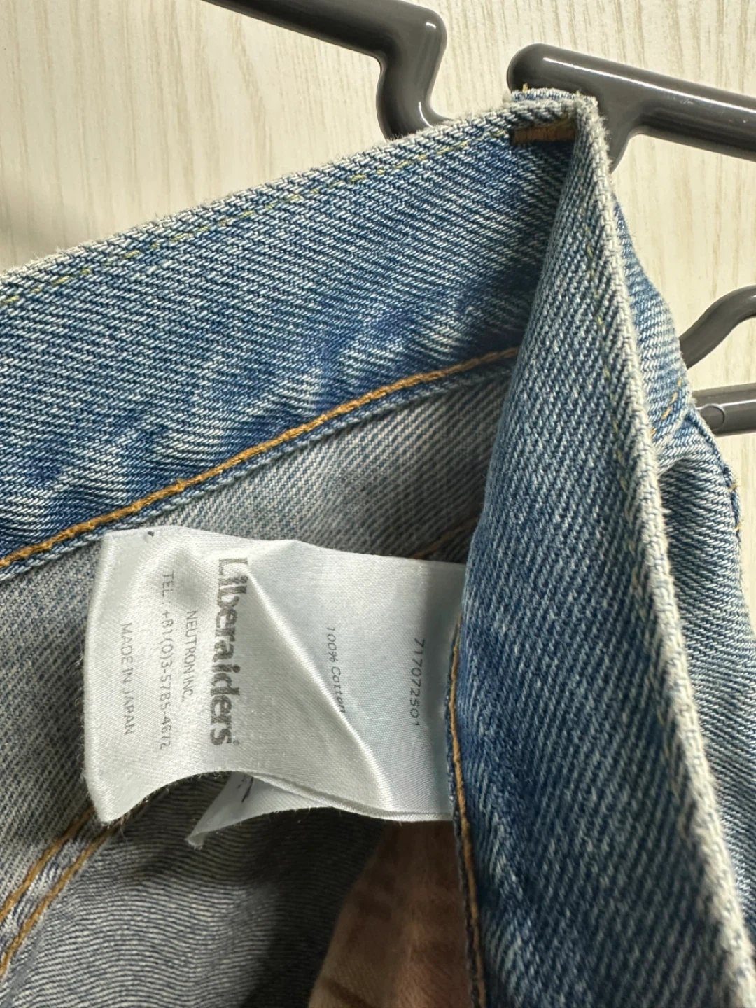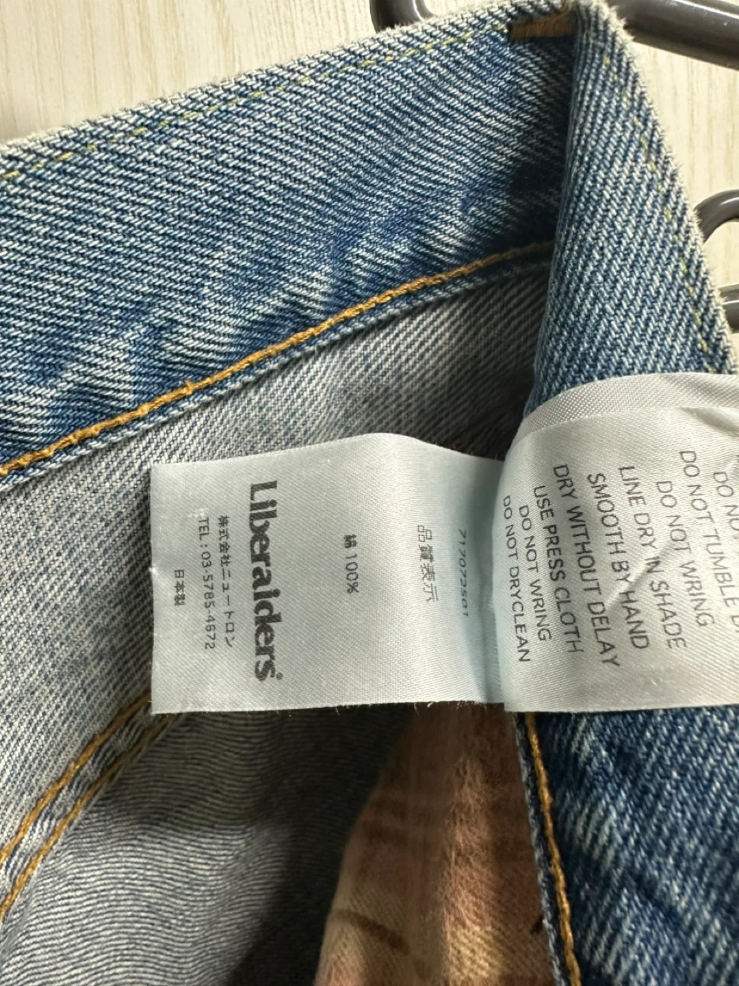 リベレイダースのデニムパンツです ・ブランド:リベレイダース ・素材:綿100% ・色:ブルー 34 (ウエスト92cm,股上36.5cm,股下75cm,裾幅22cm) 定価は、**39,600円(税込)**です。 一度履いて、一度洗濯してます。 中古品であることご了承ください