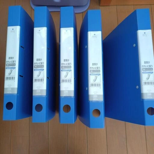 A4サイズの青色Dリングファイル、230枚収納可能です。 新品、未使用ですが、長期間保管しておりました。 定価は1冊500〜600円くらいだと思います。 5冊セットの金額になります。 自宅まで引取にきていただける方よろしくお願いいたします。
