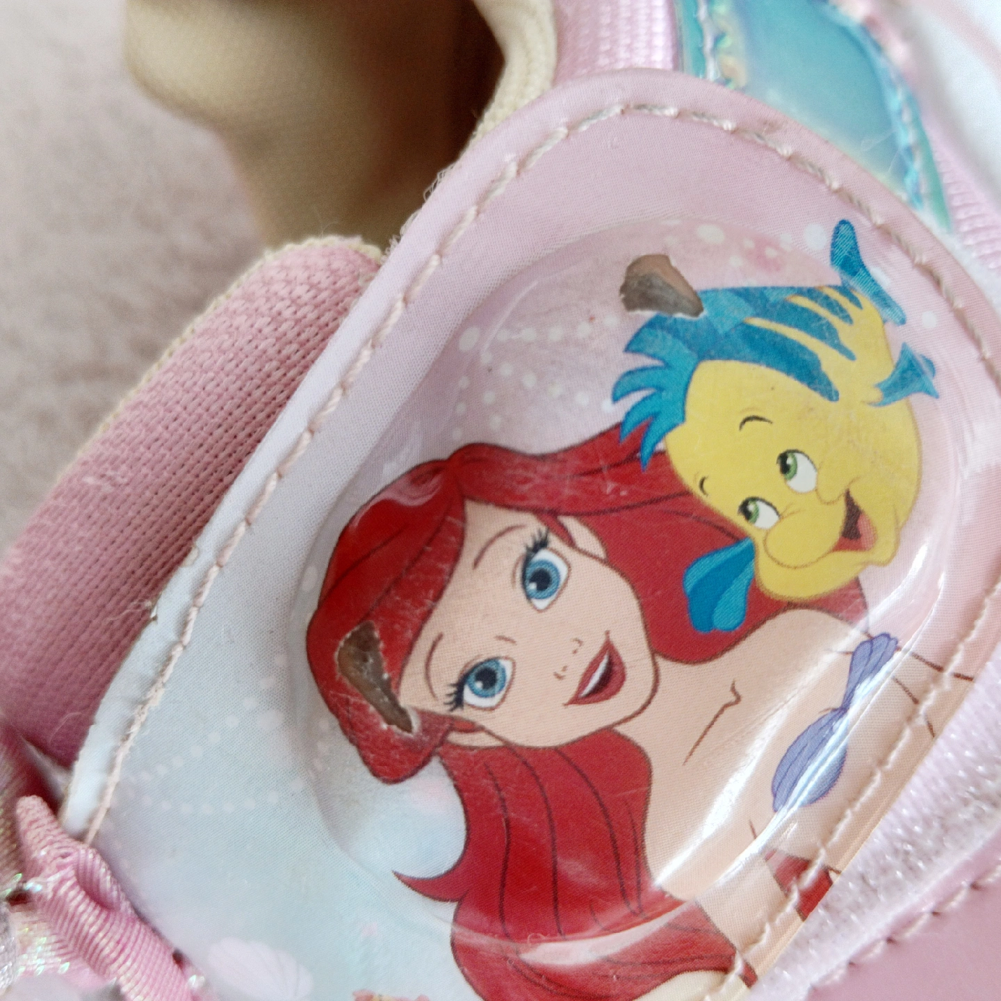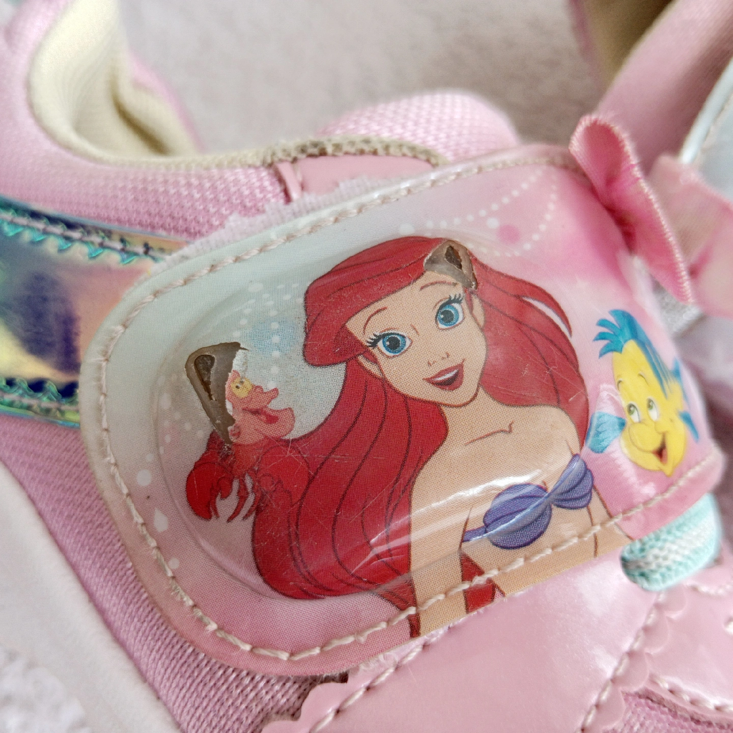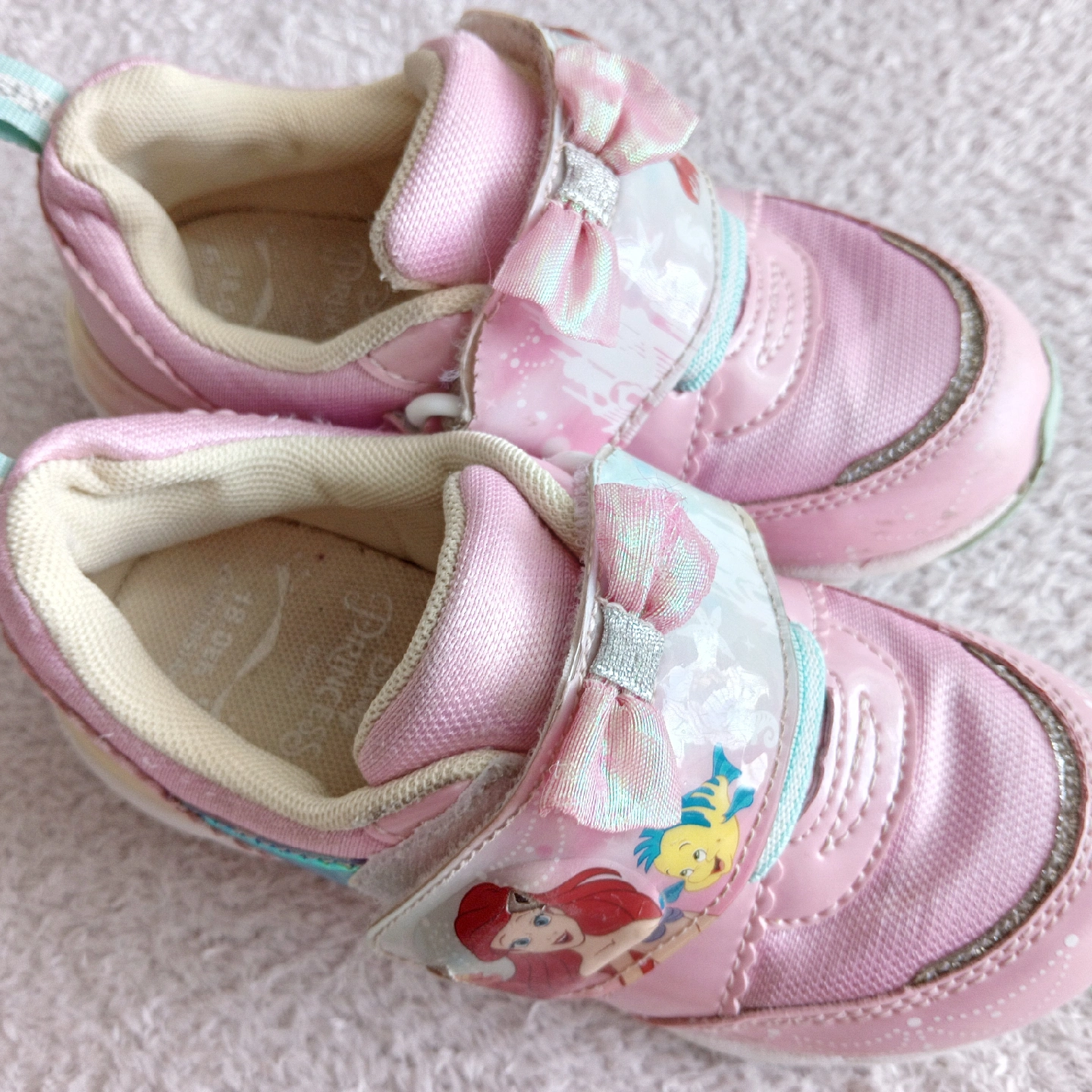 あたたかさMoonStarディズニープリンセスアリエルの光るスニーカー18cmです。 ・サイズ:18cm ・カラー:ピンク ・アリエルの絵柄 ・使用感あり 光るベルトの部分に傷があります。 かかとのプ ルストラップに名前が書いてあります。 3ヶ月程通園に履いていました。 プリキュアの靴を買って履かなくなりサイズが小さくなったのでお譲りします。 お芋掘りなど汚れる場所に履いて行くのにお役立てくださいwww きれいに洗いましたが神経質な方は購入ご遠慮ください。 猫を一匹飼っています猫アレルギー等ある方はご購入お控えください。 中古品であることご了承ください