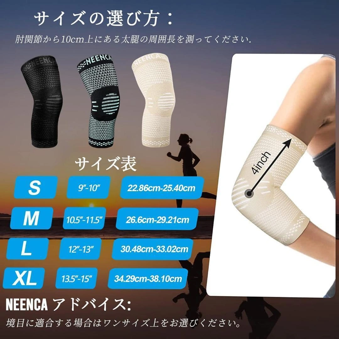 NEENCAの肘サポーターです。 通気性のある生地で、適度な伸縮性があり、肘全体をしっかり固定します。 柔らかく、肘の全方位を保護します。 伸縮性、通気性、防臭効果があります。フィットしてずれ落ちにくいです。 適度な厚さで耐久性があり、汗が溜まらず蒸れません。 筒状デザインで肘を固定し、保護性能を高めます。 肘を中心に段階的に着圧し、圧力を分散させ、日常のメンテナンス に役立ちます。 育児・家事・仕事など日常生活で肘を保護します。 ゴルフ・テニス・ワークアウトなどのスポーツシーンにも。 2枚セット、ゴールドのXLサイズです。 ご希望の方はお気軽にご連絡ください。