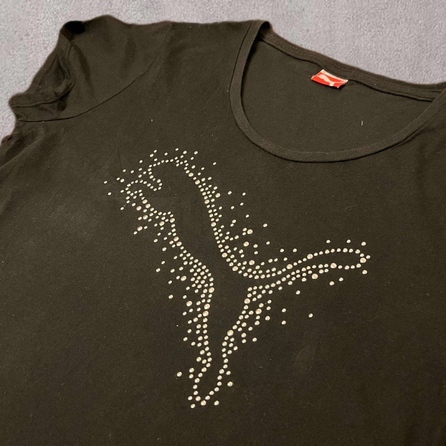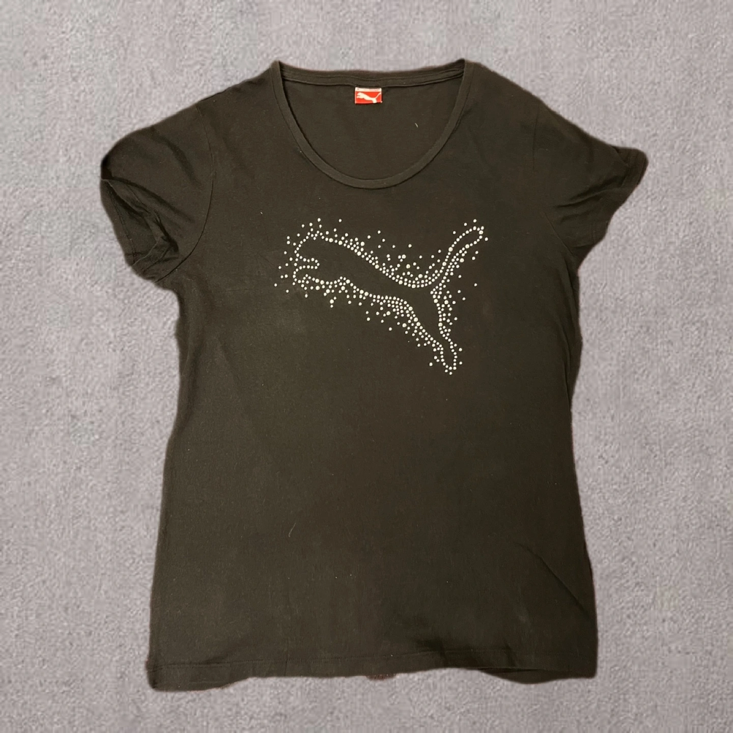 あたたかさ【ブランド】 PumaのTシャツは、スポーツウェアとしての機能性とファッション性を兼ね備えています。 【デザイン】 フロントにはストーン装飾のPumaロゴがあり、シンプルながらも目を引くデザインです。 【着心地】 柔らかい素材で作られており、快適な着心地を提供します。 - ブランド: Puma - 色: 黒 - デザイン: ストーン装飾のロゴ - 背面ロゴ: Pumaロゴ - 袖のスタイル: ショートスリーブ - ネックスタイル: ラウンドネック ご覧いただきありがとうございます。 袖···半袖 性別···レディース