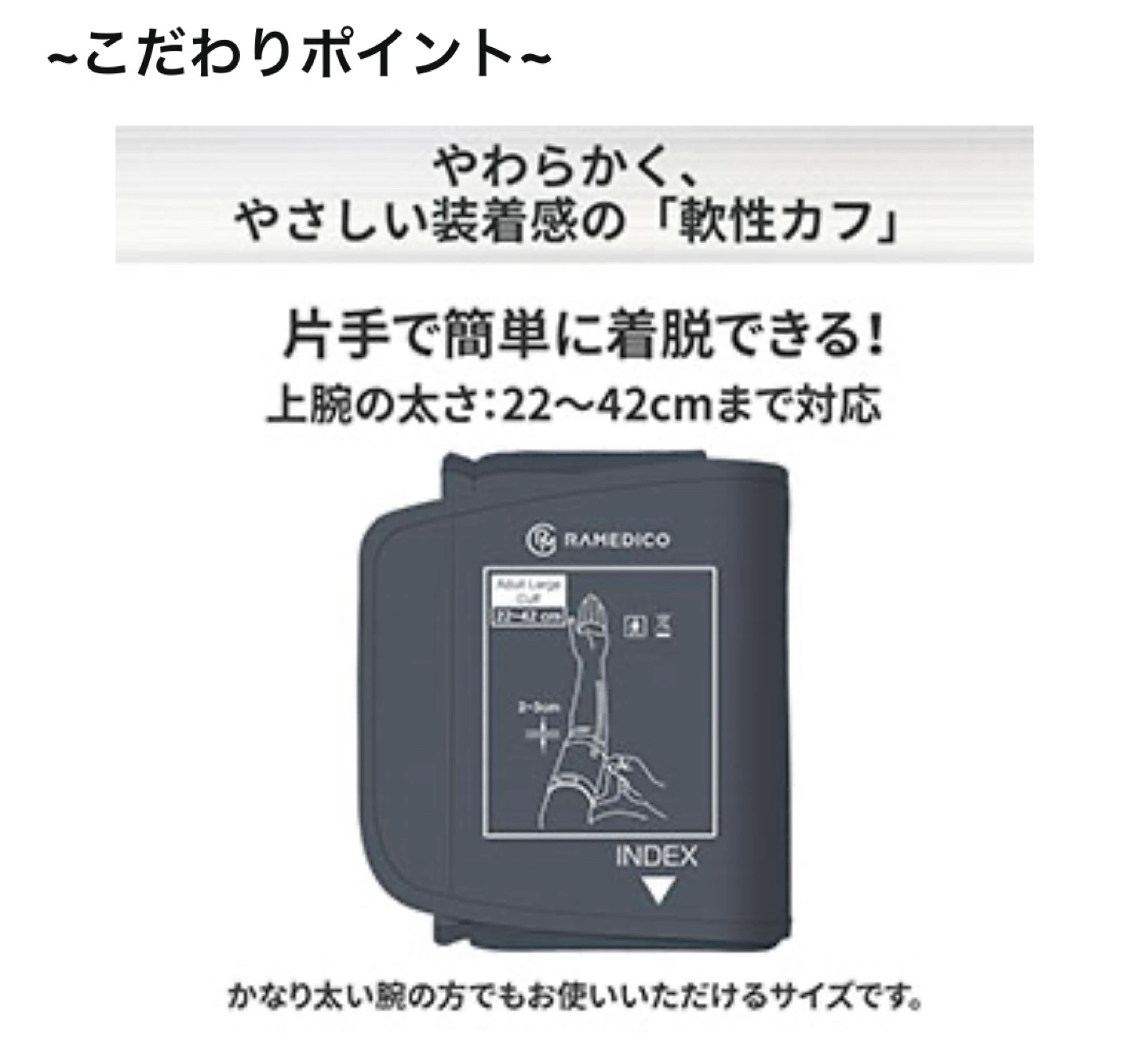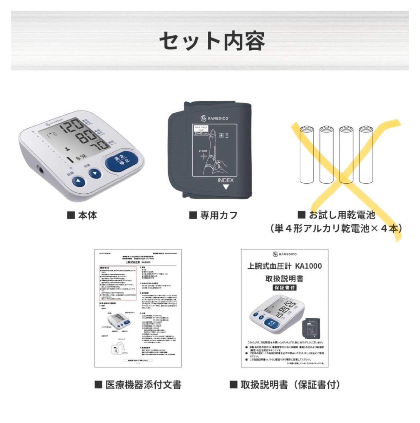 あたたかさ新品未使用ですが、開封しているのと自宅保管のためご理解いただける方のご購入でお願いします。 写真のもの全てつけます。 動作確認済みです。 ブランド RAMEDICO (タニタではありません) 付属コンポーネント カフ 電源 電池式 用途 Arm ディスプレイタイプ デジタル 商品の寸法 16.6長さ x 8幅 x 11厚み cm 測定値メモリー機能が2人×199回 薄くて軽量なので、保管の場所を取らず、お家の中で持ち運びしやすい! 専用カフは、標準で太い腕の方でも使えるサイズ!(22〜42cm) カフが正しく巻けているかの確認機能 体動検知機能 見やすいデジタル表示 血圧値レベル6段階表示 《商品説明》 ●高精度測定を実現する補助機能を搭載。 ●手のひらサイズの小型・軽量タイプ。 ●片手で簡単に着脱が可能。 ●2人分×199回の測定結果を記録。 ●不規則脈波検知機能付き。 《仕様》 ■電源:単4形乾電池4本 ■測定可能腕周り:約22〜42? ■測定範囲:(血圧)[最高]60〜230mmHg [最低]40〜130mmHg (脈拍数)40〜199拍/分 ■測定精度:(血圧)±3mmHg以内 (脈拍数)±5%以内 ■重量:約198g(電池含まず)