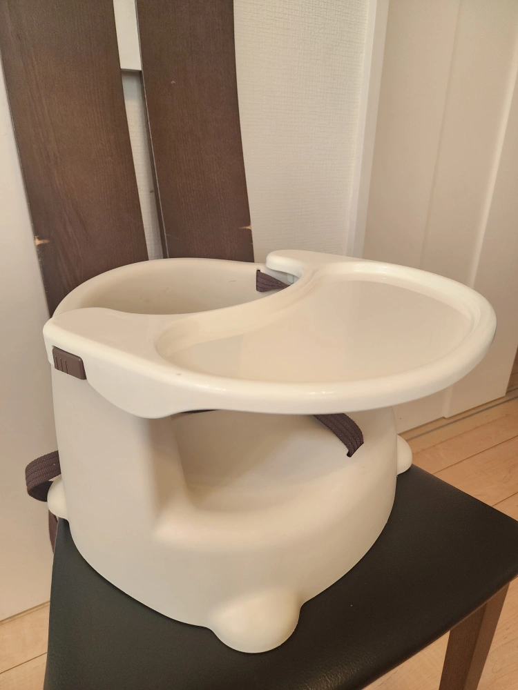 Richell リッチェル 2way ベビーチェア カラー/アイボリー ベルト/ブラウン (幅)350mm×(奥行)390mm×(高さ)220・270mm 座面高さ85・135mm そのまま床置きでも、ダイニングテーブルの椅子などにも取り付けられる、2wayタイプのベビーチェアです。 白いテーブルは取り外し可能です。 旅行の時や帰省の時にとても重宝しました⭐ 軽いので、車であれば遠方にも持って行きやすいです。 中古品であることご了承ください。 他サイトにも出品してますので、先に購入された方優先となります。