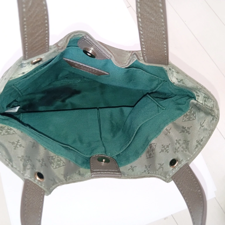 あたたかさrussetのトートバッグです ・カラー:グリーングレー ・内側:グリーン ・ポケット3個 ・縦21cm横26cm ・底にマチ幅8cm 購入してから長期間自宅保管しています。 5〜10年程経過しているはず🤔 あまり使用していませんが取っ手に劣化が見られます。神経質な方は購入ご遠慮ください。 中古品であることご了承ください 猫を一匹飼っています猫アレルギー等ある方はご購入お控えください。 受け渡しはららぽーと横浜でも出来ます、ご相談ください。
