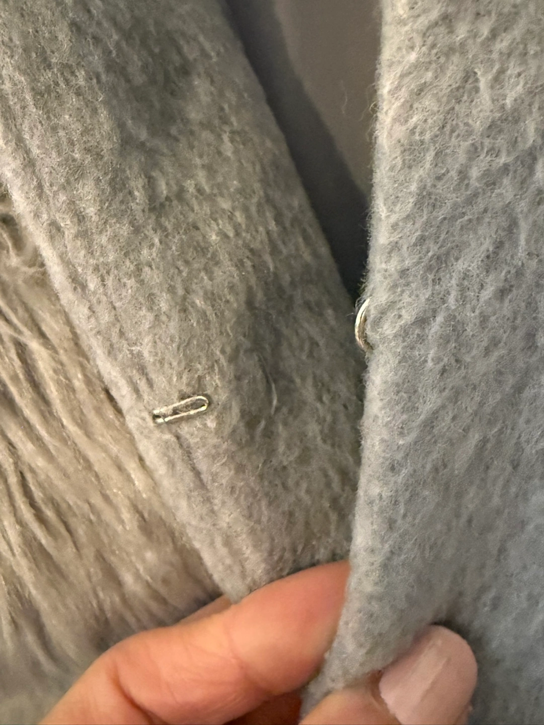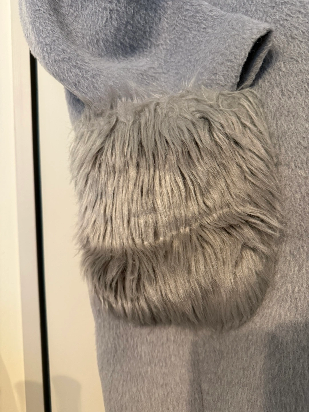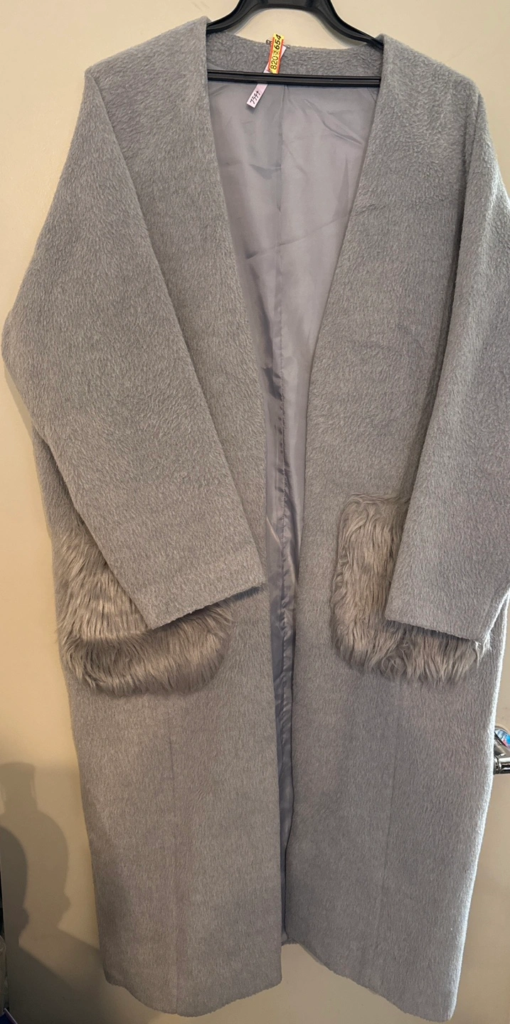 ノーカラーのシャギーコートです ポケットのファーがアクセントで可愛いです 前はホックで止められるようになっています 総裏地付き 後ろはスリットがないので、歩く時にバサつかず、風が入らず暖かいです お色はライトグレー サイズはL クリーニング済 畳んでしまっていましたので畳じわはご容赦ください。かけておけば綺麗になります! 痩せてサイズが合わなくなってしまいましたので着てくださる方にお譲りいたします💕 シンプルで素敵なコートです。 是非! 個人保管のusedでありますことにご理解のあります方にお譲りいたします。 保管場所に喫煙者やペットちゃんはおりません。