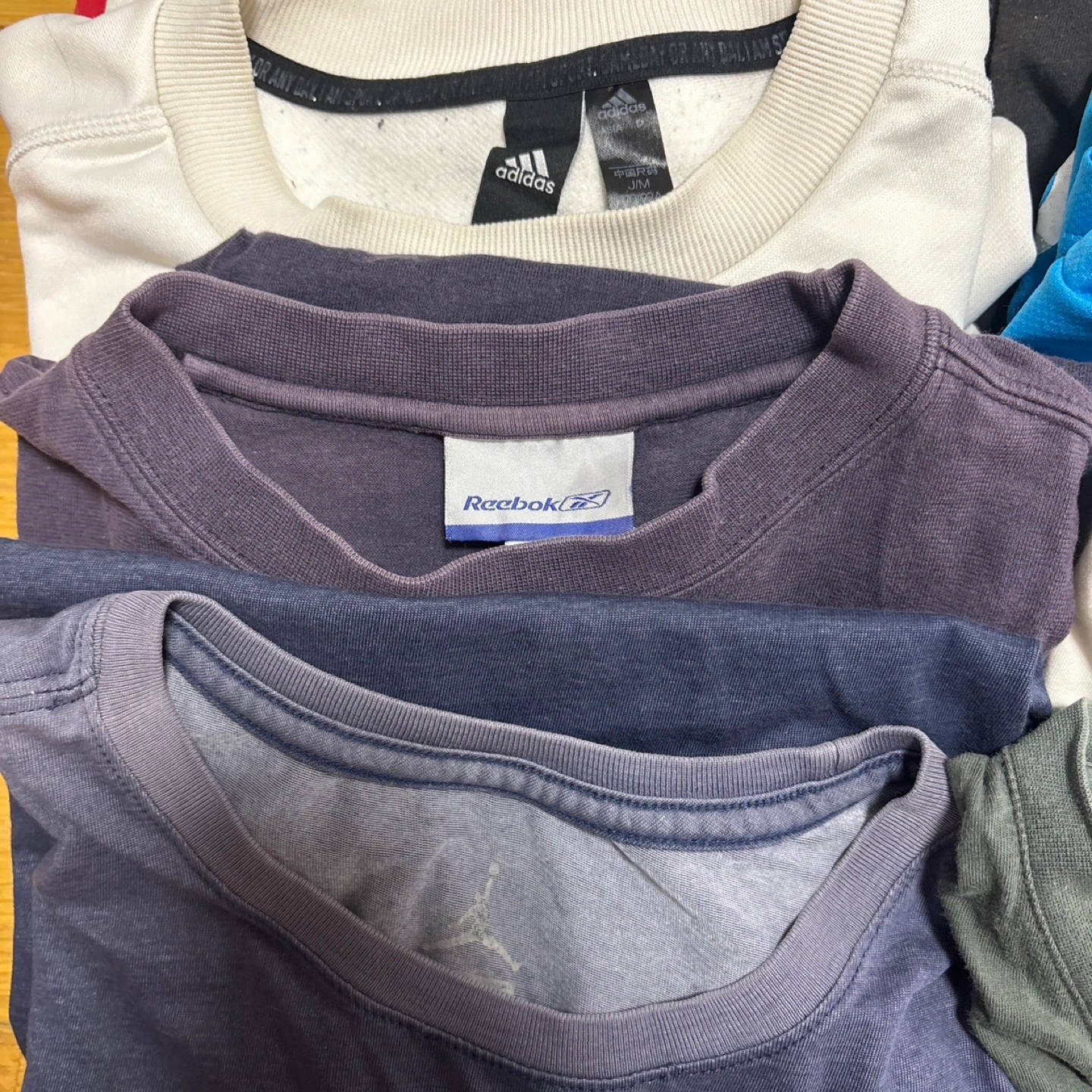 ブランドとノーブランドTシャツセット 21枚 未使用品〜古着まで 下北沢の古着屋で購入他、 全て洗濯済で、状態の良好ですが一部汚れある商品もあります。 ●注意事項● USEDのため、 多少のシミ・ダメージ・匂い等があります。 デリケートな方はトラブルとなる可能性かありますので、購入をお控えください。 質問などありましたらご気軽にご質問ください。 タグ付きあり LL〜Sサイズまで Mサイズ多め - ブランド: adidas - ブランド: new balance - ブランド: Reebok - ブランド: Jordan - 色: 白 - 色: 黒 - 色: グレー - 色: 青 - 色: 赤 - 色: 紫