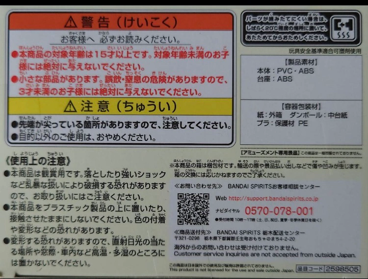 アミューズメント景品ですので ご理解ある方のみ購入されて下さい。 商品撮影のため開封しました。 詳細は写真でご確認ください。 質問などありましたらお気軽にコメントください。 ・ペット、喫煙者なしです。 よろしくお願い致します。