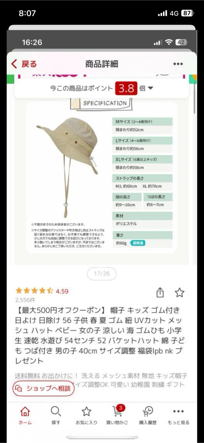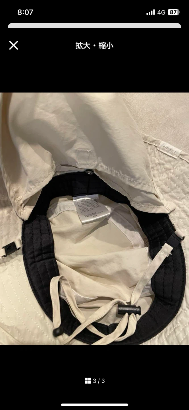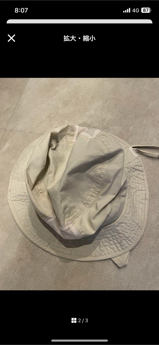 UVカットメッシュ素材のベージュの帽子、52cmサイズ、広いつばで快適な着用感。 - 色: ベージュ - サイズ: 52cm - 素材: UVカットメッシュ - デザイン: 広いつば - 特徴: 調整可能なストラップ 楽天にて昨年購入 https://item.rakuten.co.jp/nesleaf/lphat03/?scid=wi_ich_iphoneapp_item_share ホームクリーニング済み。 後ろの日よけは取り外し可能。 お値下げ不可。