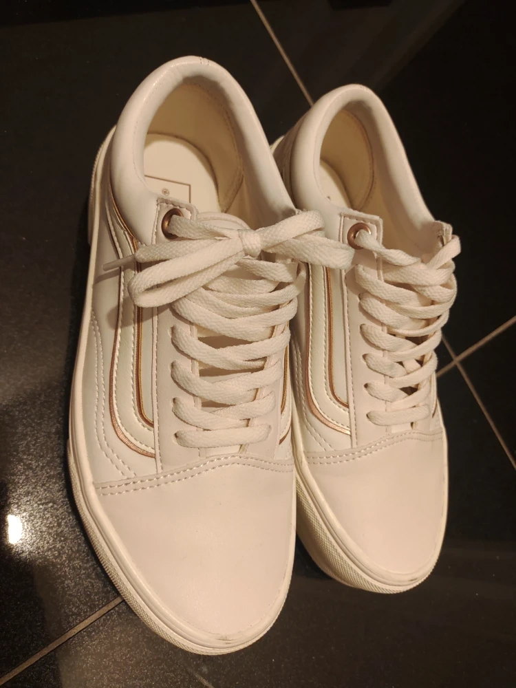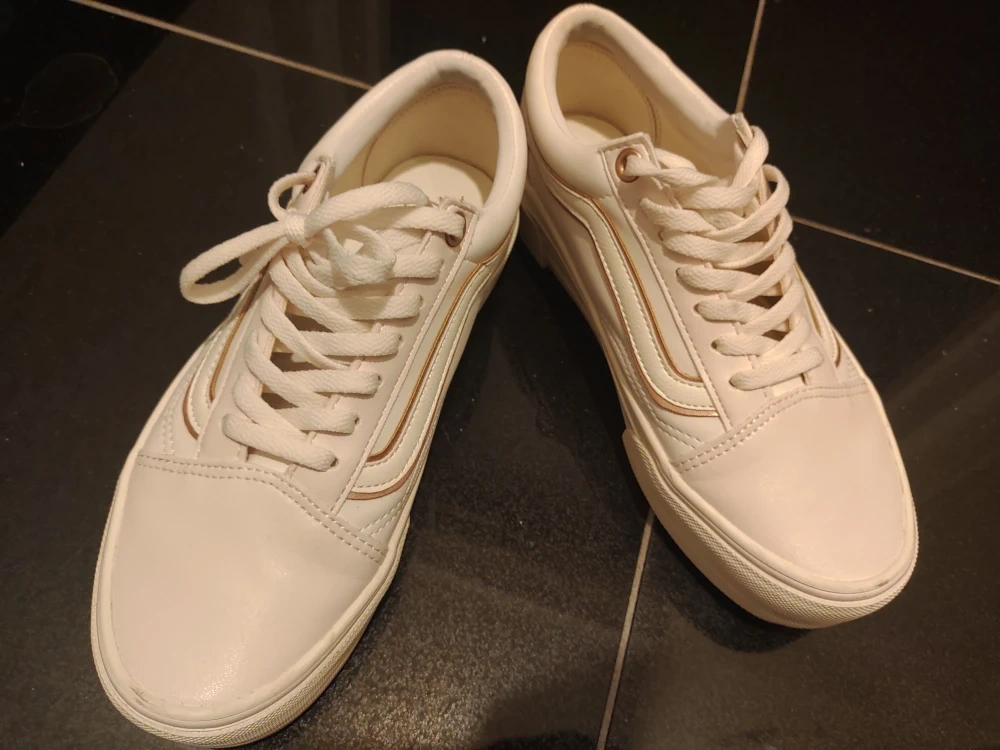 美品 VANS ヴァンズ OLD SKOOL CHKY オールドスクール チャンキー 厚底スニーカー VANS【ヴァンズ】のプラットフォーム ソールをアップデートしたチャンキーソールコレクション。 トゥーガードとヒールガードの間から覗くアウトソールラバーがアクセントになった3cmの厚底スニーカー。 アッパー全体にスエードを使用したシックなモデル。 カラー:HEAVENLY PINK ピンク サイズ:24 色味がとても可愛く厚底でスタイルアップ! 5回ほど履きました。お渡し前に再度お手入れしてから送らせていただきます。 中古のことをご了承ください。 ※玄関の暖色照明にて撮影しております。
