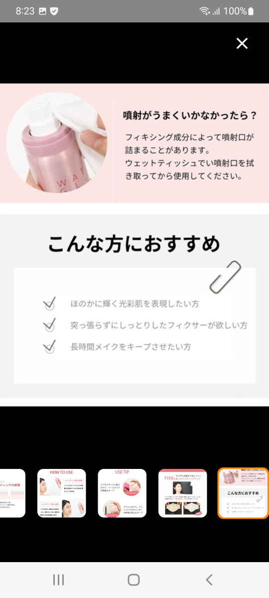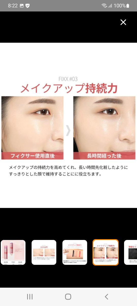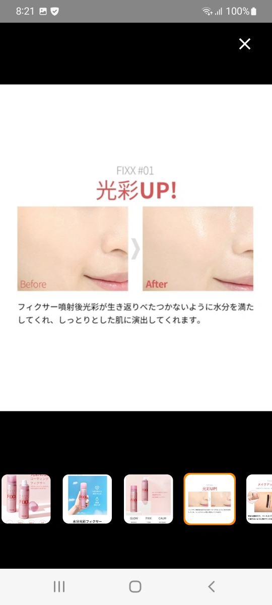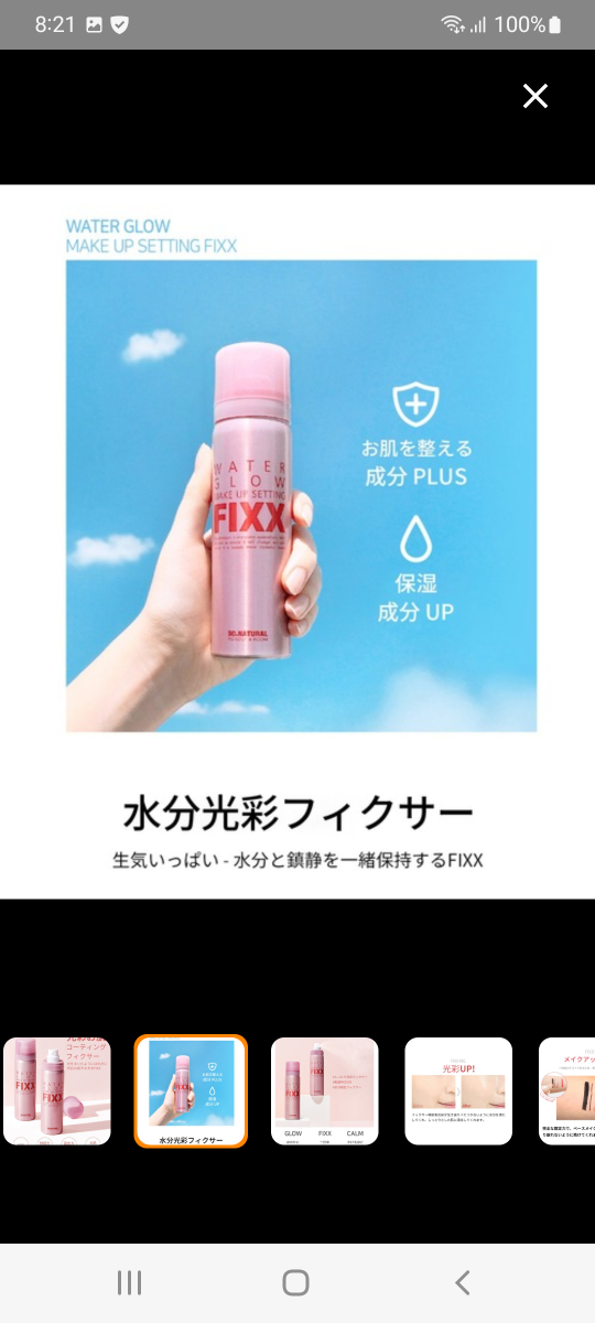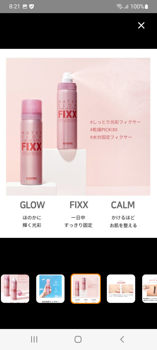 WATER GLOW MAKE UP SETTING FIXX 箱なし、新品です、 so natural for your skin 商品名:【so natural】WATER GLOW MAKE UP SETTING FIXX -75ml(メイクアップフィクサー/グロウタイプ)メイクキープミスト メイクキープスプレー 原産国:韓国 夕方になってもお直し知らず!! 光をまいたようなほのかに煌めくグロウタイプのメイクキープスプレー ベースメイク、ポイントメイクの前に吹きかけて、メイクの密着力を高め、 メイクの仕上げにダブルでひと吹きするだけで、メイクをぴったりと定着固定させ、美しい仕上がりをキープします。 プロポリス、ダマスクローズウォーター、ティーツリー、パンテノール、ツボクサエキス、ヒノキ水など 多数配合でお肌にうるおう保湿系キープスプレー。 水分保湿、お肌を整える、光彩と贅沢なグロウフィクサーです。 保湿ケアと同時にメイクをしっかりキープしてくれます。 POINT1 水光肌のような光彩グロウフィクサー POINT2 きめ細かいミストで噴射ムラを防ぐ! POINT3 プロポリスやダマスクローズウォーター、ツボクサ、ティーツリー配合でしっかり保湿 POINT4 パフやブラシにも吹きかけてメイクの密着度UP POINT5 マスクにメイクが付きにくくする! POINT6 汗・皮脂によるテカリやにじみを抑える! POINT7 お肌にうるおいを与え乾燥からお肌をガード! 【容量】 75mL 【使用方法】 メイク後に目や口を閉じて、顔から20〜30cm離して顔全体にスプレーします。 スプレーの後は、肌に触れずそのまま乾かします。(容器は振らずにお使いください) ※メイク前に使用すると、メイクの定着力を高めます。