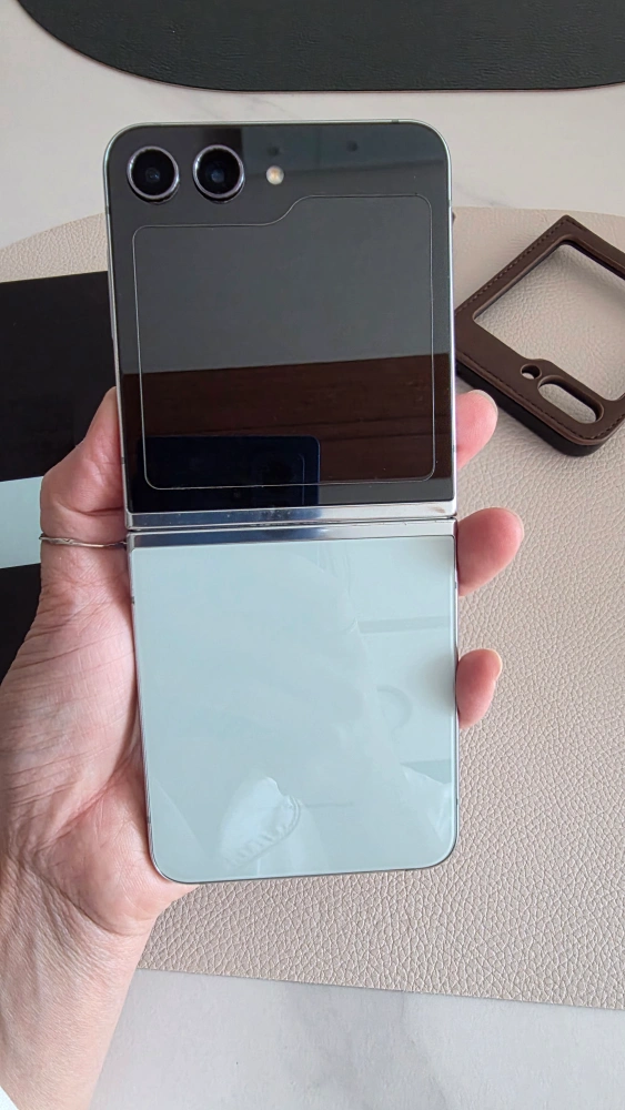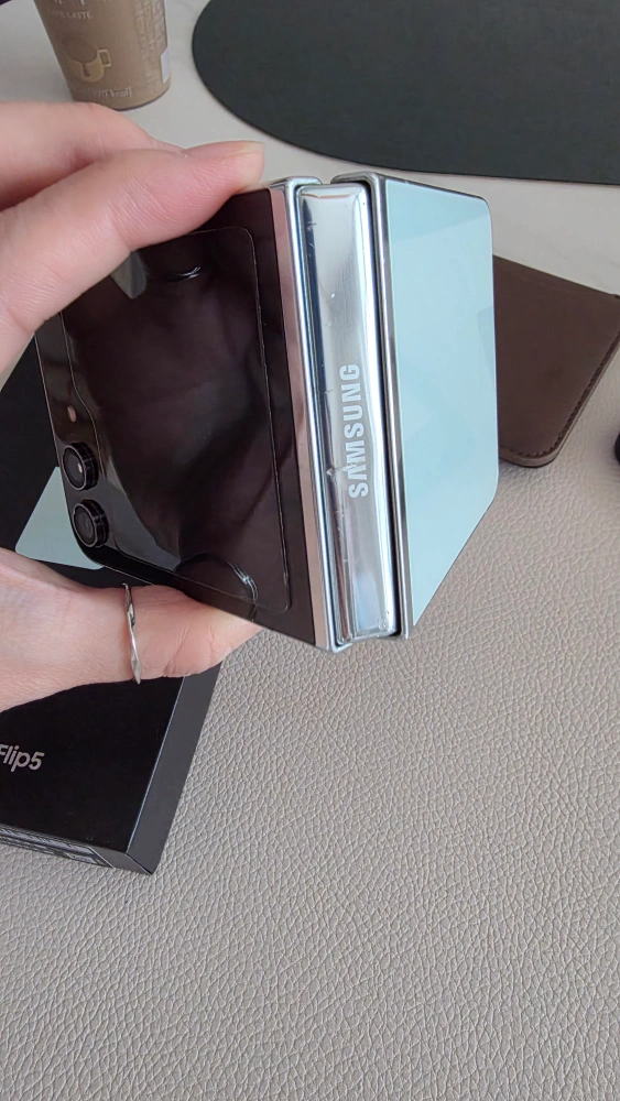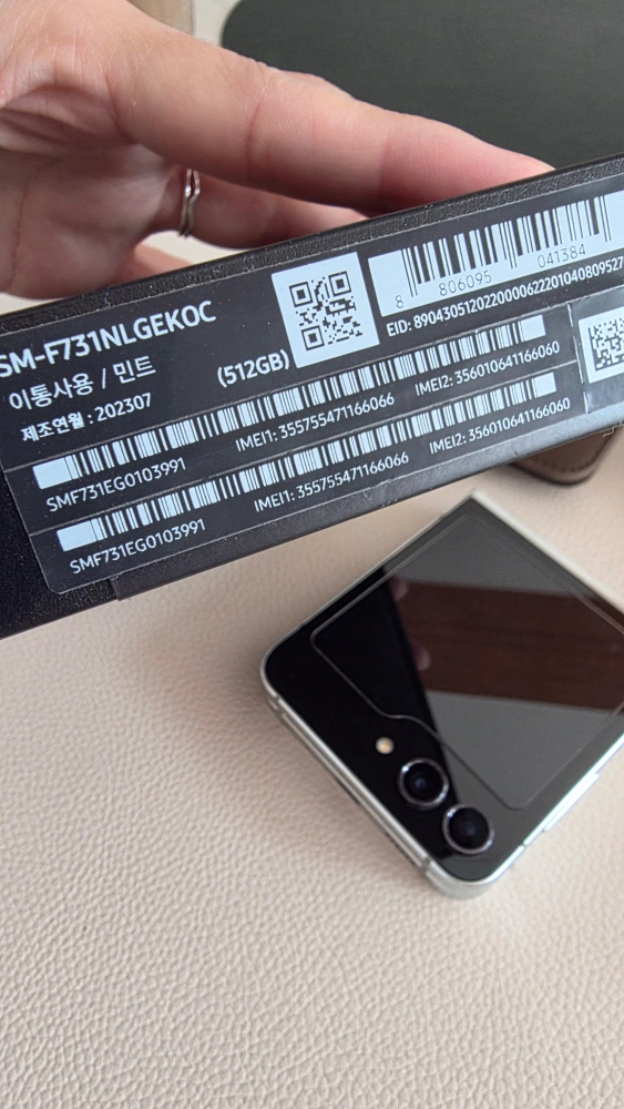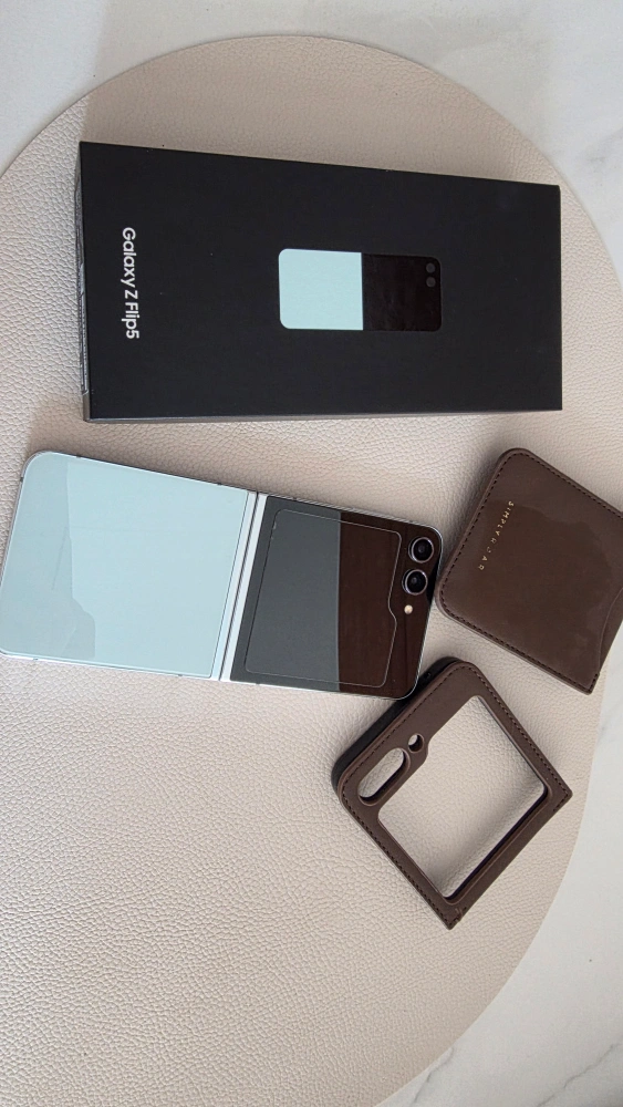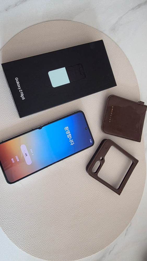 삼성 갤럭시 Z Flip5 민트색상 512GB 모델입니다 sk 2년쓰고 해지했어요 - 박스, 케이스 있구요 화면 왼쪽 액정 살짝 나가있어요. 쓰기엔 문제 없어요 사진과 같이 기스있고 오른쪽 살짝 까져있어요 케이스 사용해서 뒷면은 깨끗하구요 사진 꼼꼼히 보시고 사실분만 쳇주세요 직거래입니다.