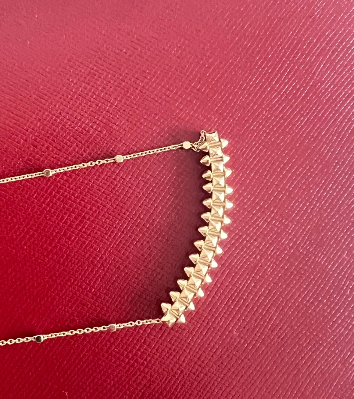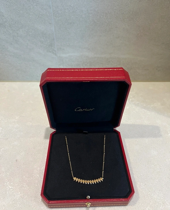 까르띠에 클래쉬 드 목걸이 2022. 6. 28. 압구정 현대백화점에서 구입한 상품입니다. 로즈골드 색상이고 체인 연장 되어있습니다. 구입 후 어울리지않아 거의 보관만 하시다가 가격이 올랐다하셔서 판매하십니다~! 쇼핑백, 박스, 인보이스,보증서 모두 있습니다. 사진처럼 보관 잘 되어있는 상태이고, 길이는 4cm 연장되어있어 구매자분에게 맞는 사이즈로 조절하여 착용 가능하십니다 당일 받을수 있게 보내드려요