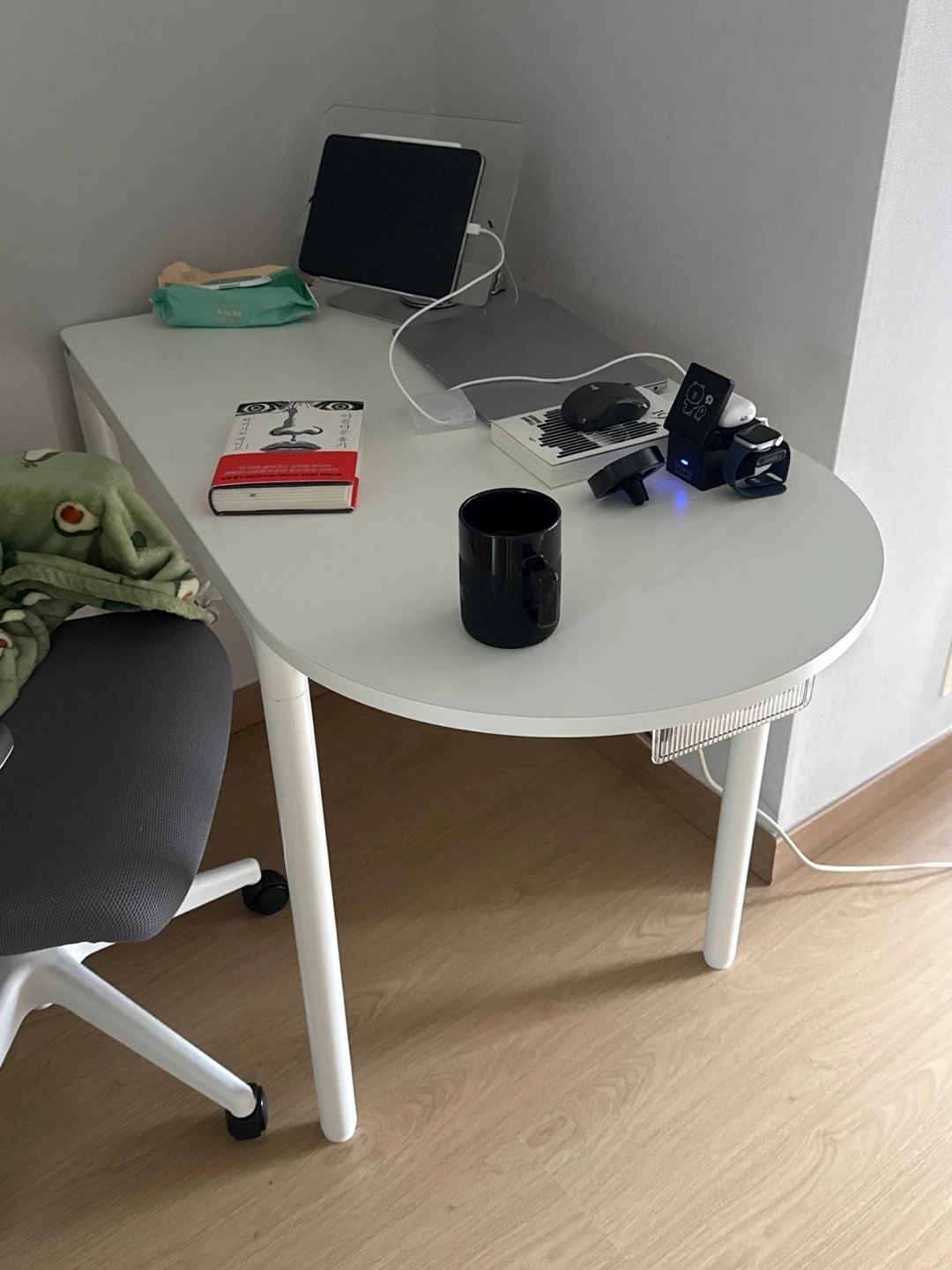 깔끔한 디자인의 흰색 책상 사이즈는 1070 X 600 X 740 이고 상태는 깨끗합니다 세번째 사진이 제가 산 모델입니다 직접 오셔서 가지고 가셔야합니다!
