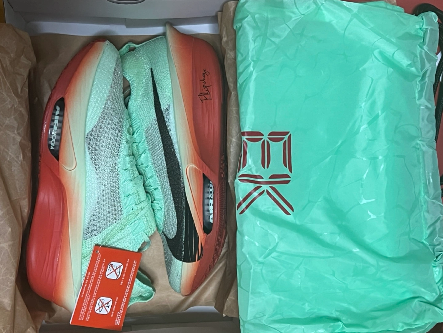 안녕하세요, 알파플라이3 킵초게 270 사이즈 판매합니다. 매장에서 구매했던 쇼핑백 그대로 있는 미개봉 새상품입니다. (사진은 같이 구매한 275 사이즈 개봉 사진) 나이키 강남에서 구매한 영수증 있고, 이번주 수요일까지 판매 안될시 지인 선물 하려고 합니다. 360,000원에 판매합니다. 직거래 / 시착 불가