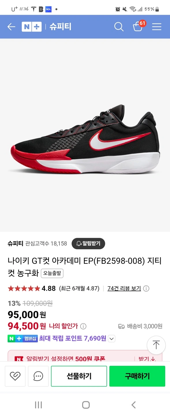 봉통 글리터 하트 메리제인 신발 2642,000원
