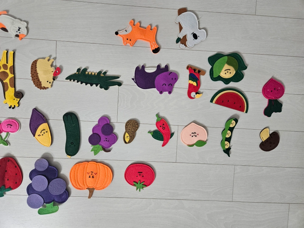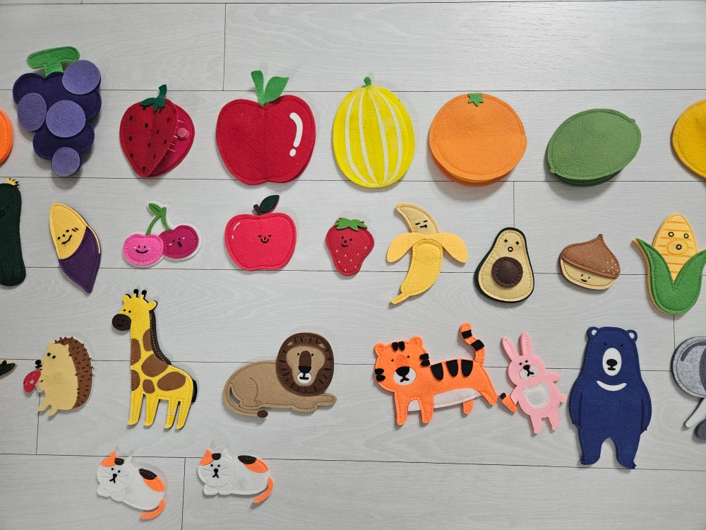 노리터 펠트 자석 세트입니다 과일, 동물 모양으로 아기들이 자석보드에서 재밌게 놀 수 있어요 자석으로 되어 있어 냉장고나 자석 보드에 붙여서 사용 가능합니다 깨끗하게 사용했어요. 비대면 거래합니다