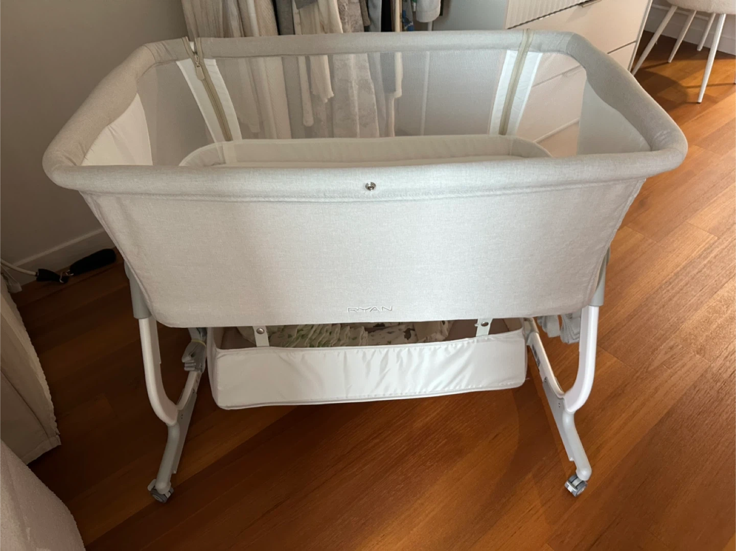 리안 드림콧 아기침대 크림 아이보리 색상이에요 재당근 아니고 사진 첨부했다시피 리안 공홈에서 구입했어요 8월 출생 아기인데 조리원 3주 있다 나와서 쓸려고 했는데 아기가 저랑 침대에서 자는 걸 좋아해서 10번 미만 눕혀보고 비닐로 씌여서 계속 보관해놓은 거의 새상품급이에요 - 기본 구성품으로 매트리스, 모기장, 하단 수납함, 성인침대 고정끈, 매트리스 커버, 전용 트래블 백 풀셋으로 다 가지고 있어요 침대전용 모빌도 추가로 구매했어요!