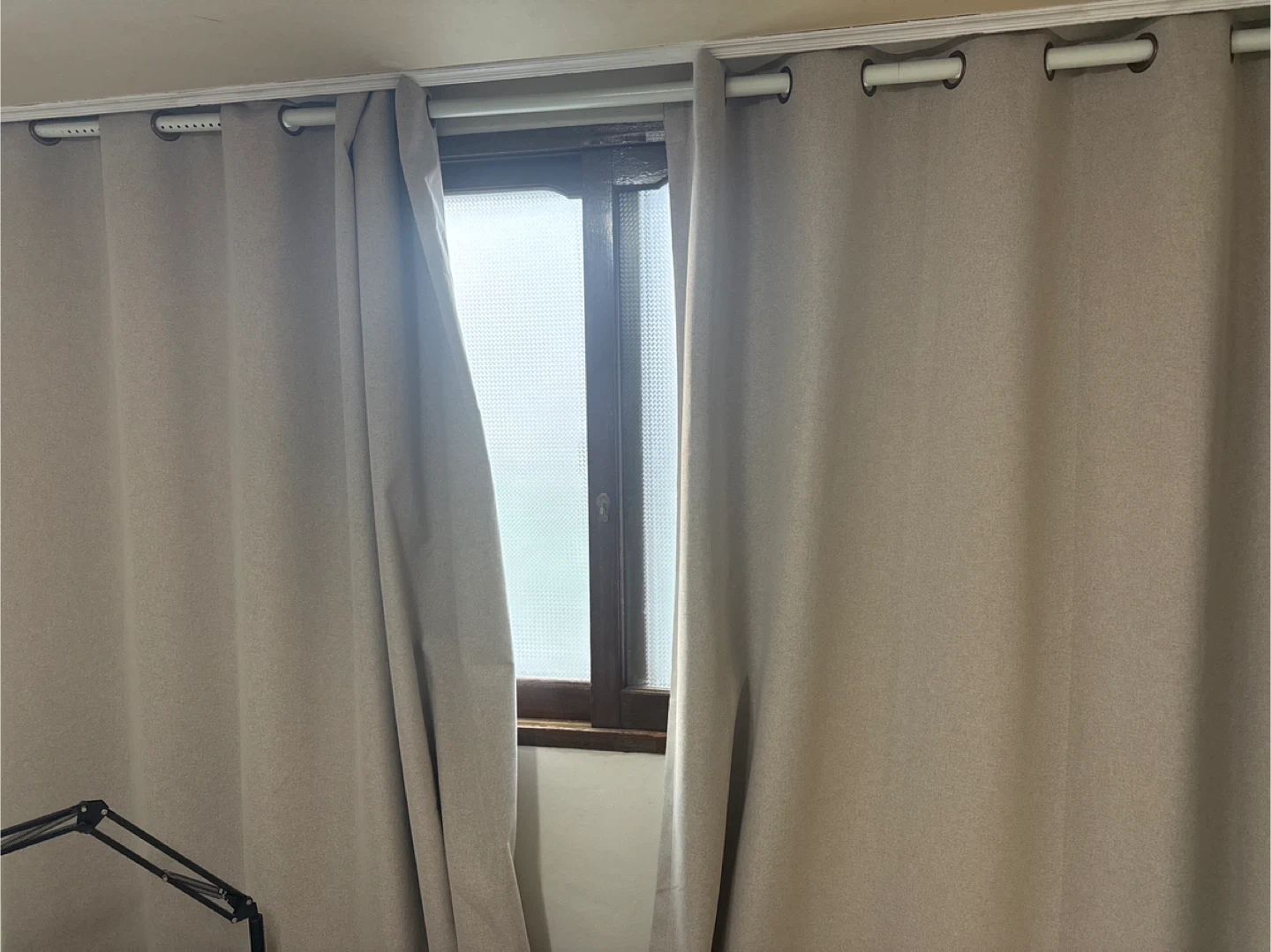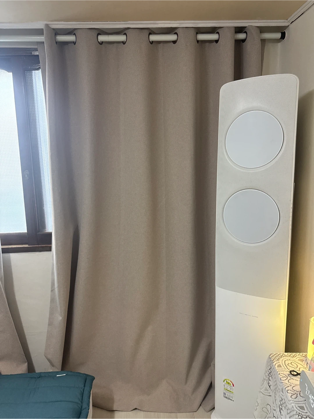 1년사용한 베이지 색상의 암막 커튼입니다 햇빛을 잘 막아줘서 낮에도 아늑한 분위기를 연출할 수 있습니다 깔끔한 디자인으로 어느 인테리어에도 잘 어울립니다 210x235 양쪽으로 두 장입니다 세탁하셔서 사용하시면 되세요