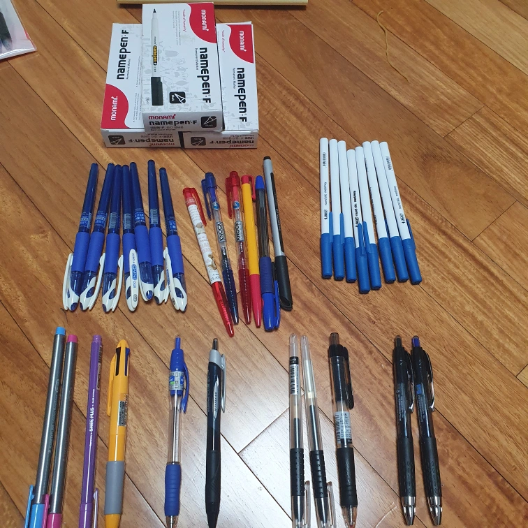 🤐 볼펜 특성상 잉크 마름이 있을 수 있어 저렴하게 올리므로 가격 조정 오렵습니다. 라벨이 보관 미스로 벗겨지거나 더러워진 것도 있을 수 있으니 예민하신 분들은 피해주세요! 1. 빅볼 /블루 8개 /개당 400원 2. 제스트림 SCN-150-38 /0.38 /블랙 1개 /800원 3. 동아 애니볼 501 /0.7 /블루 1개 /400원 4. PILOT 슈퍼갭 /1.6 /블루 1개 / 600원 5. 자바 e-office ball /1.0 /레드 1개 / 300원 6. 모닝글로리 k-colors /3색볼펜 /0.7 /700원 7. 클래식 베어 F4TI- 504 -A01 /0.38 /레드 1개 /300원 8. 노크식 중성펜 0.5 레드1개, 블루 1개. 총 400원 9. 모나미 젤러펜 502 블랙 2개. 0.5 총 500원 10. 스테들러 실버볼 블랙 1개. 800원 11. 동아 OMNI 볼 0.4. 블루 7개. 개당 500원 12. 모나미 네임펜 3박스 블랙 . 중간글씨용. 개당 500원 ✅️ 교대역부근 직거래합니다. ✅️ 교환, 환불 불가하니 신중히 생각하시어 구매 부탁드립니다! ✅️ 택배원하시면 배송비 추가됩니다.
