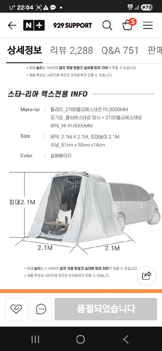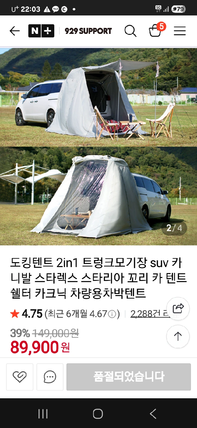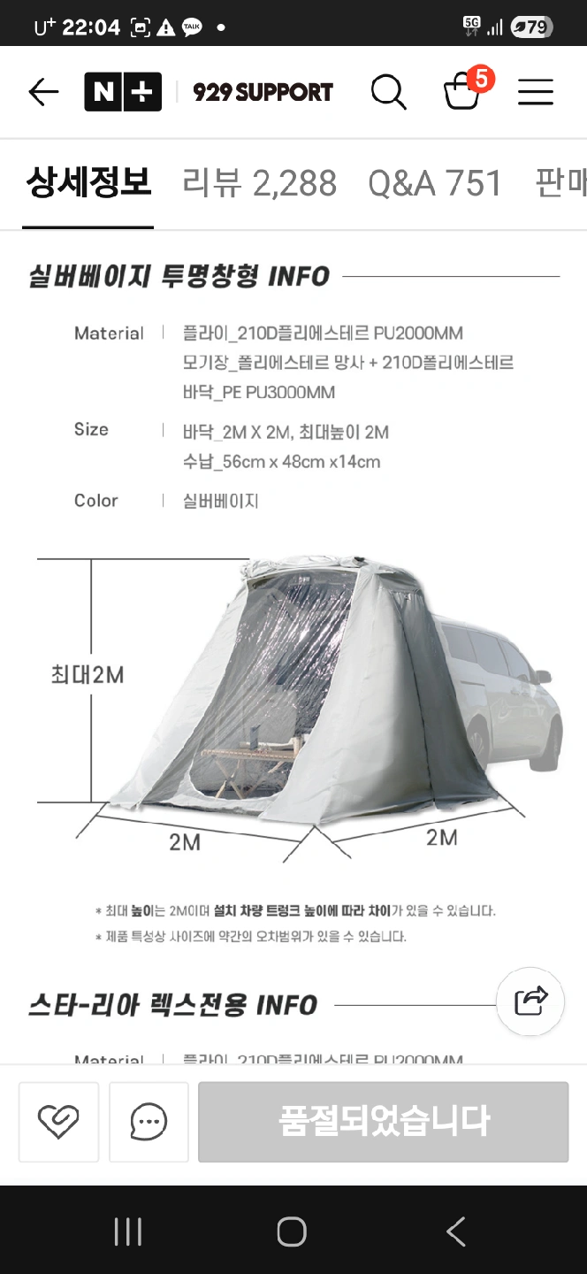 차량과 연결하여 사용하는 차박 텐트입니다 - SUV, 카니발, 스타리아 등 차량에 적합합니다 - 크기는 사진참조 - 색상은 블랙입니다 - 폴리에스테르 재질로 제작되었습니다 - 모기장이 포함되어 있어 벌레 걱정 없이 캠핑을 즐길 수 있습니다 - 받아 보고 확인 차 한번 펴본 후 차량교체로 창고에 넣어 뒀습니다. 사용무, 사은품 다 있습니다. 바닥에 손톱보다 작은 구멍 하나 있었는데 교환 귀찮고 의미없어 그냥 창고에..보관백(보스톤백크기)에 보관중 노쇼로 다시 판매합니다 반품×